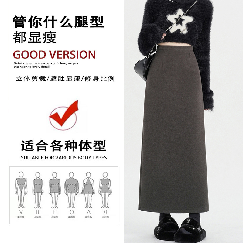 实拍特厚毛呢料半身裙女秋冬2025新款气质中长款包臀裙子a字长裙