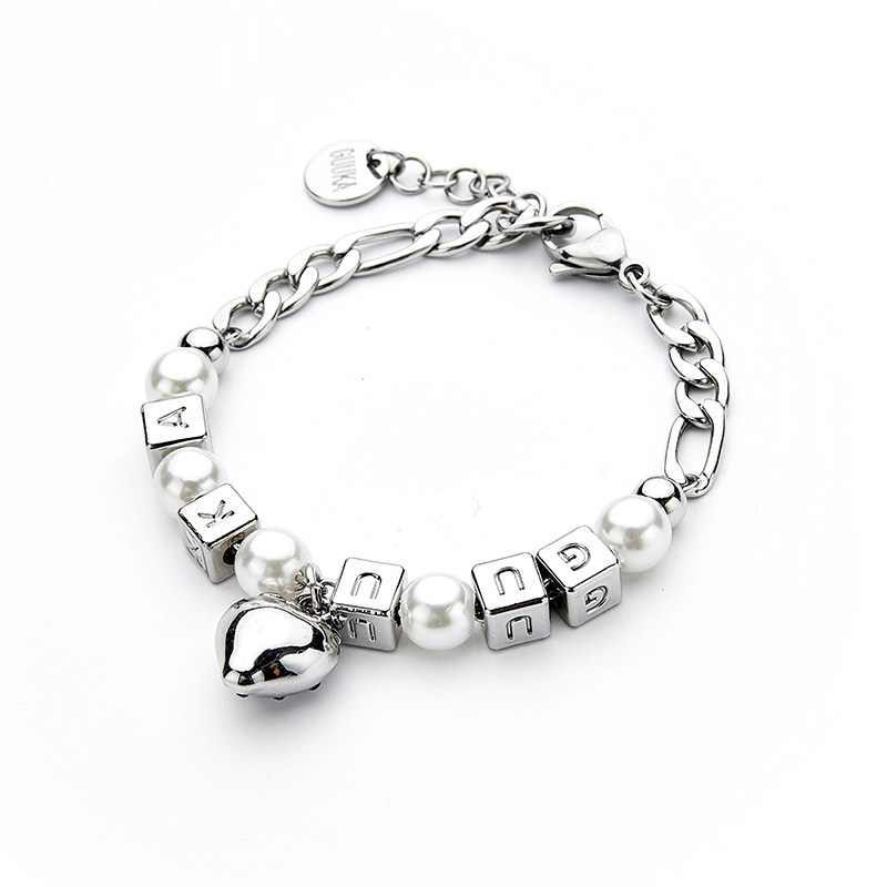 双高胎同款GUUKA潮方块字母手链 明星情侣手环爱心草莓珍珠手链子