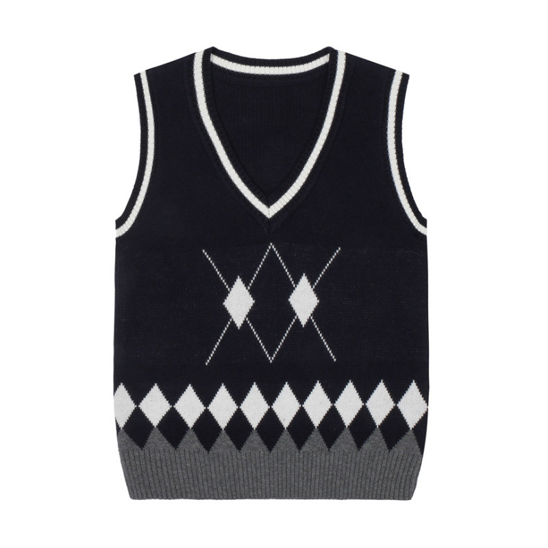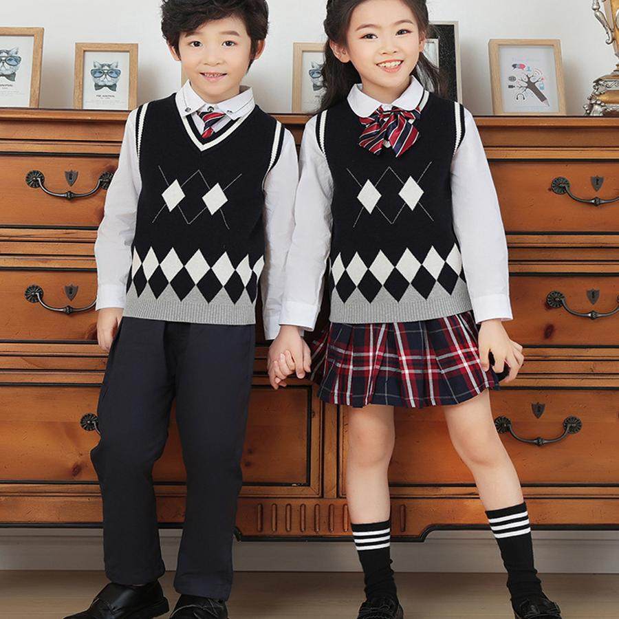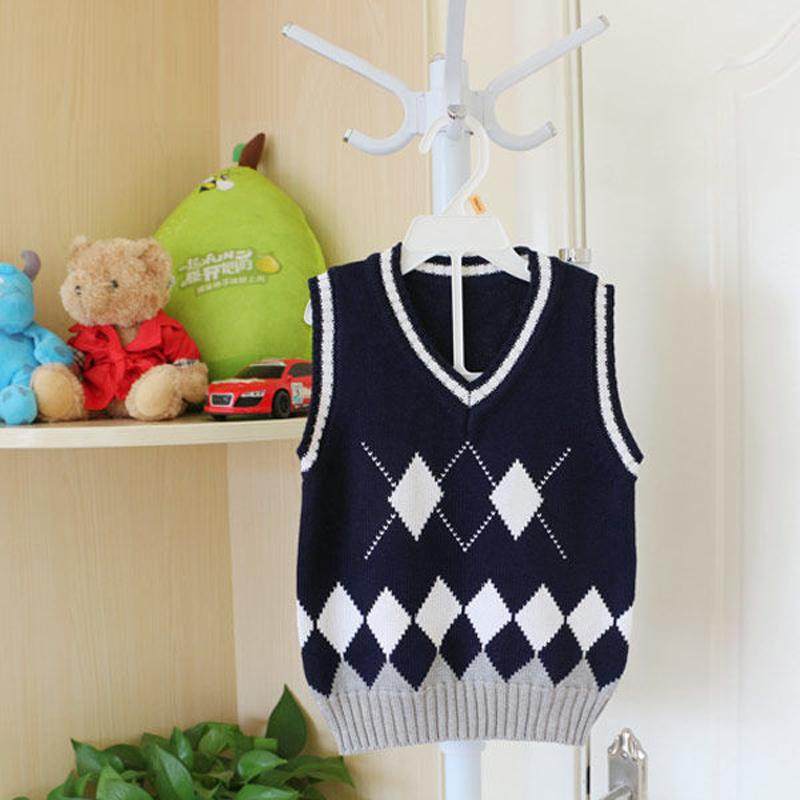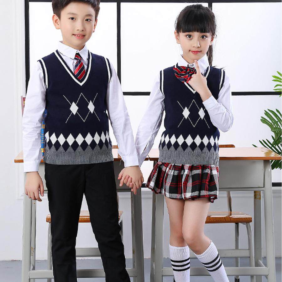 儿童毛线背心男童学院风V领坎肩中大童毛衣春秋女童针织马甲校服