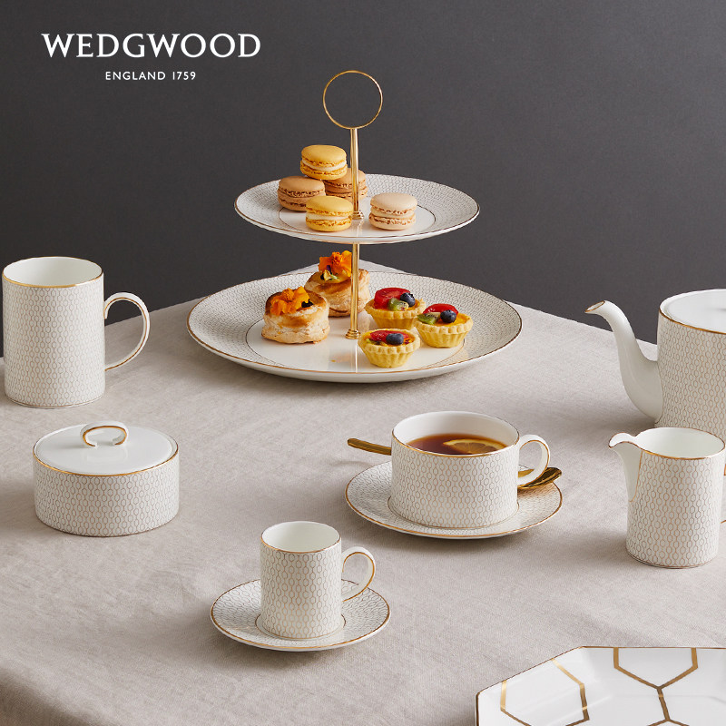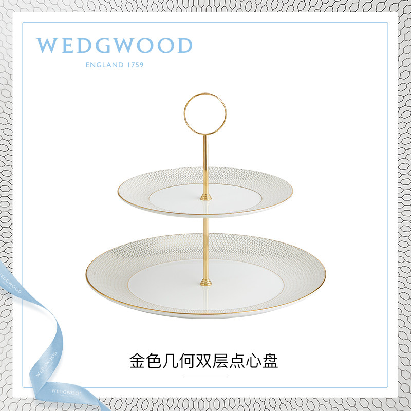 WEDGWOOD玮致活金色几何双层点心盘骨瓷果盘双层欧式糖果盘点心盘