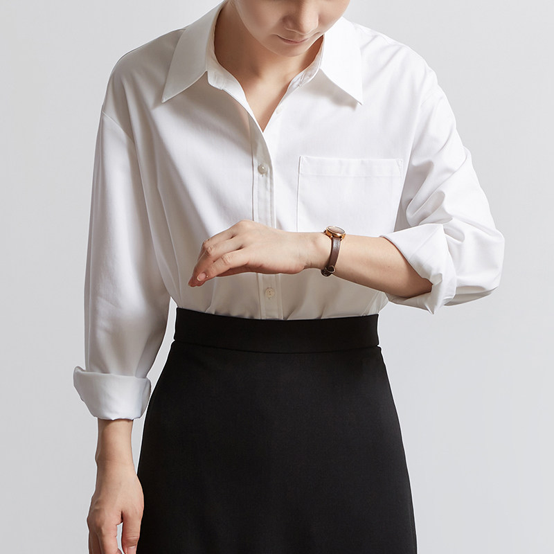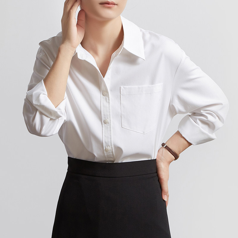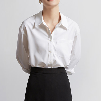CHICBLISS 白色衬衫女秋季通勤气质长袖莫代尔休闲叠穿衬衣女外穿