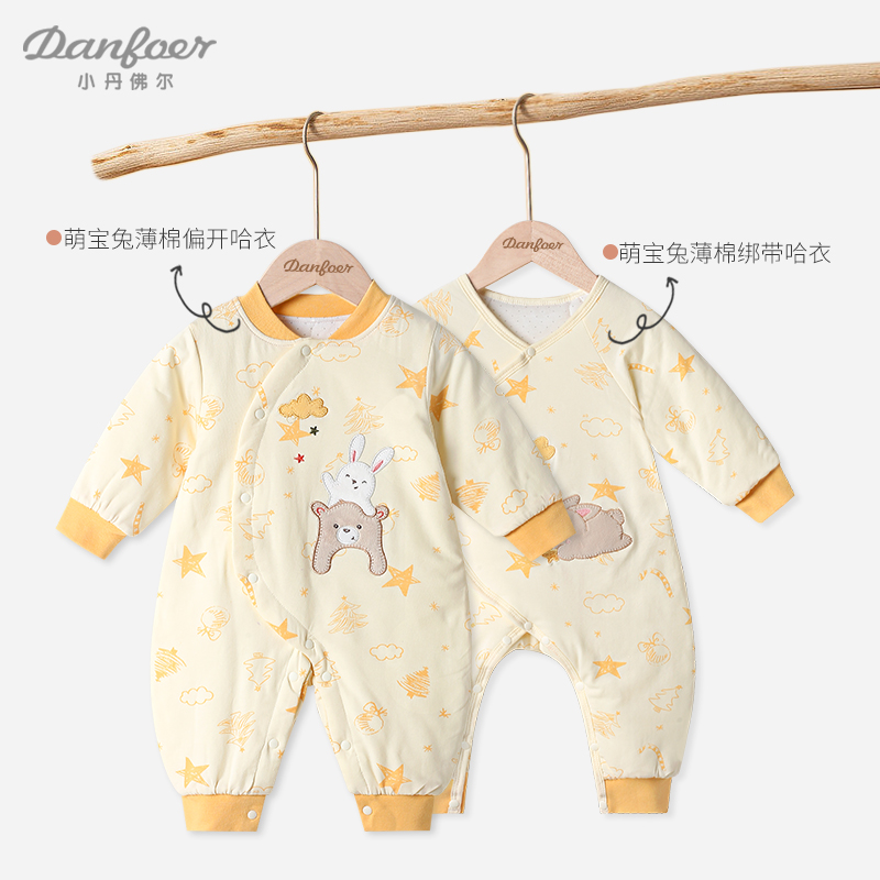 小丹佛尔偏开按扣薄棉秋冬连体衣