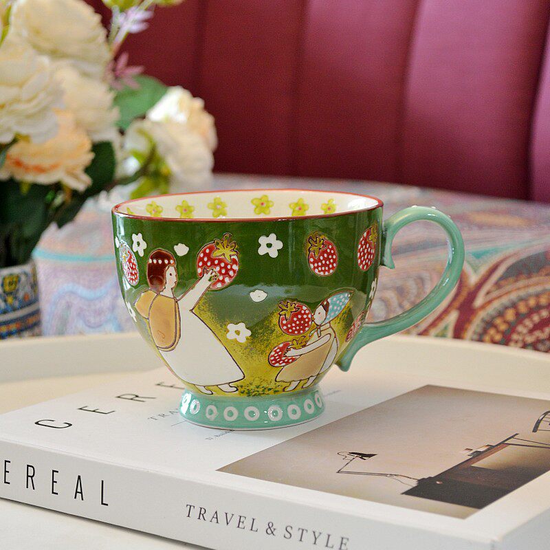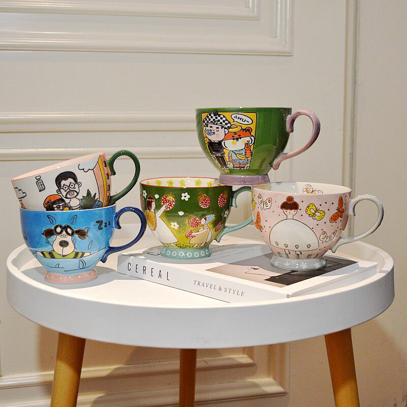 埃兰迪尔小众马克杯设计师款手绘釉下彩卡通杯子高颜值早餐牛奶杯