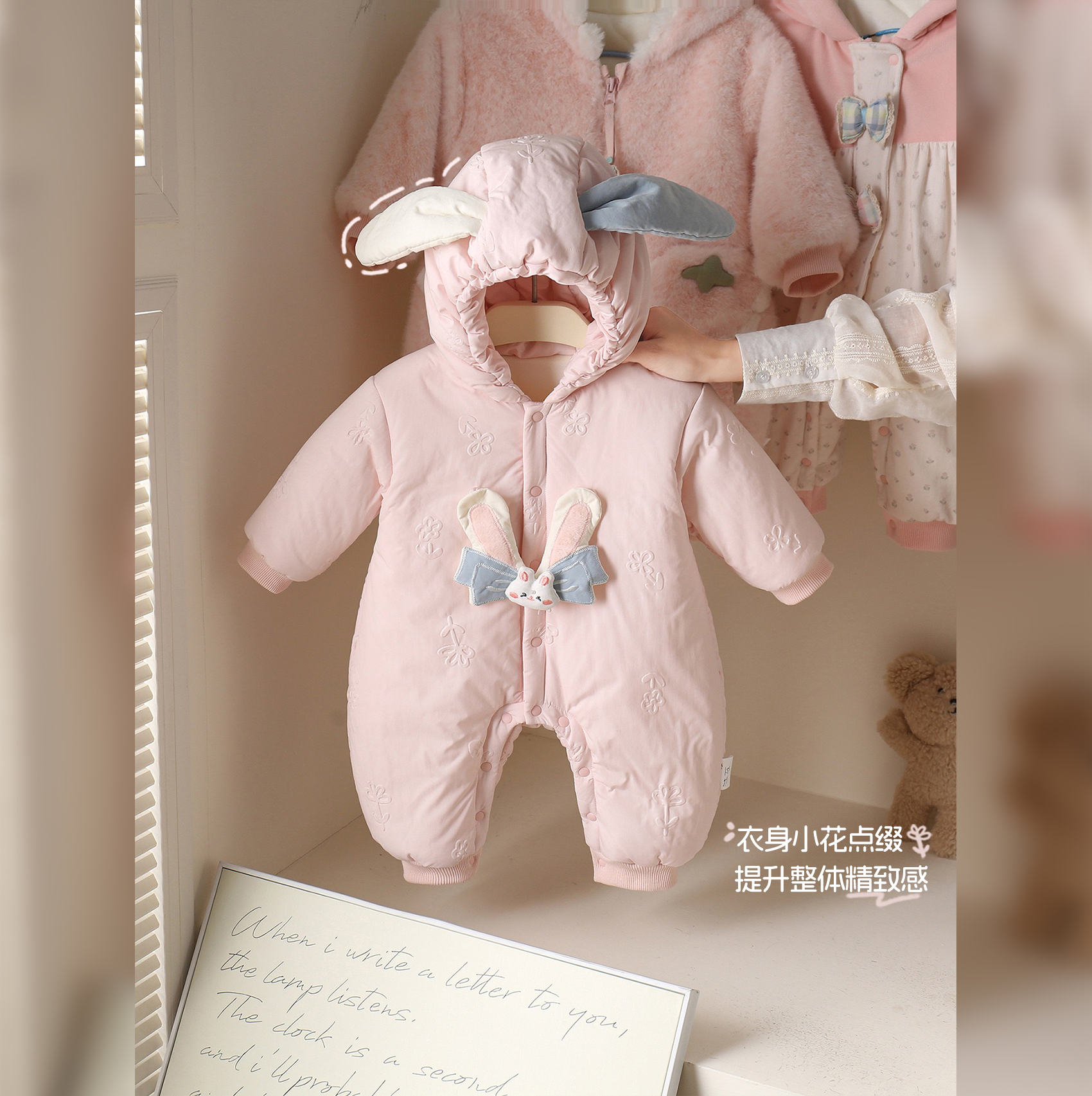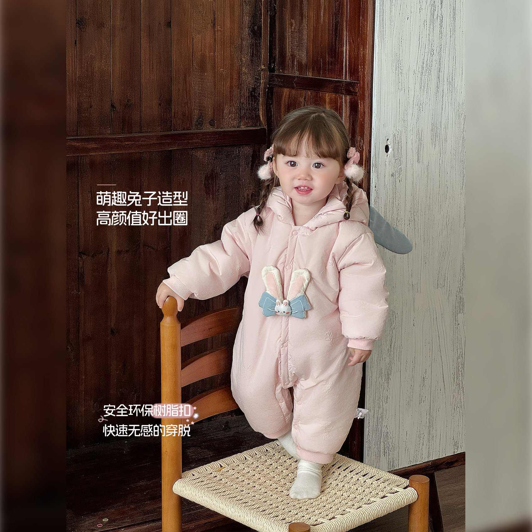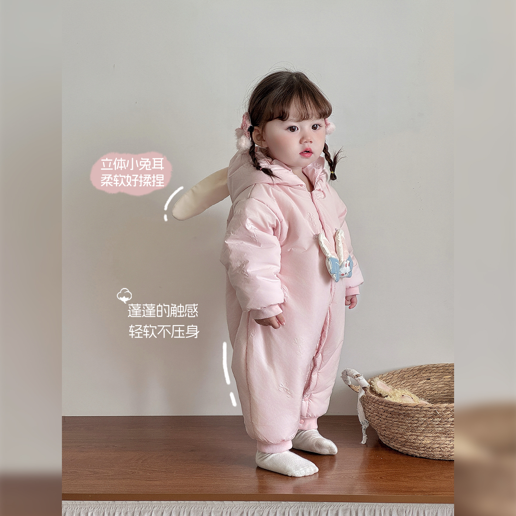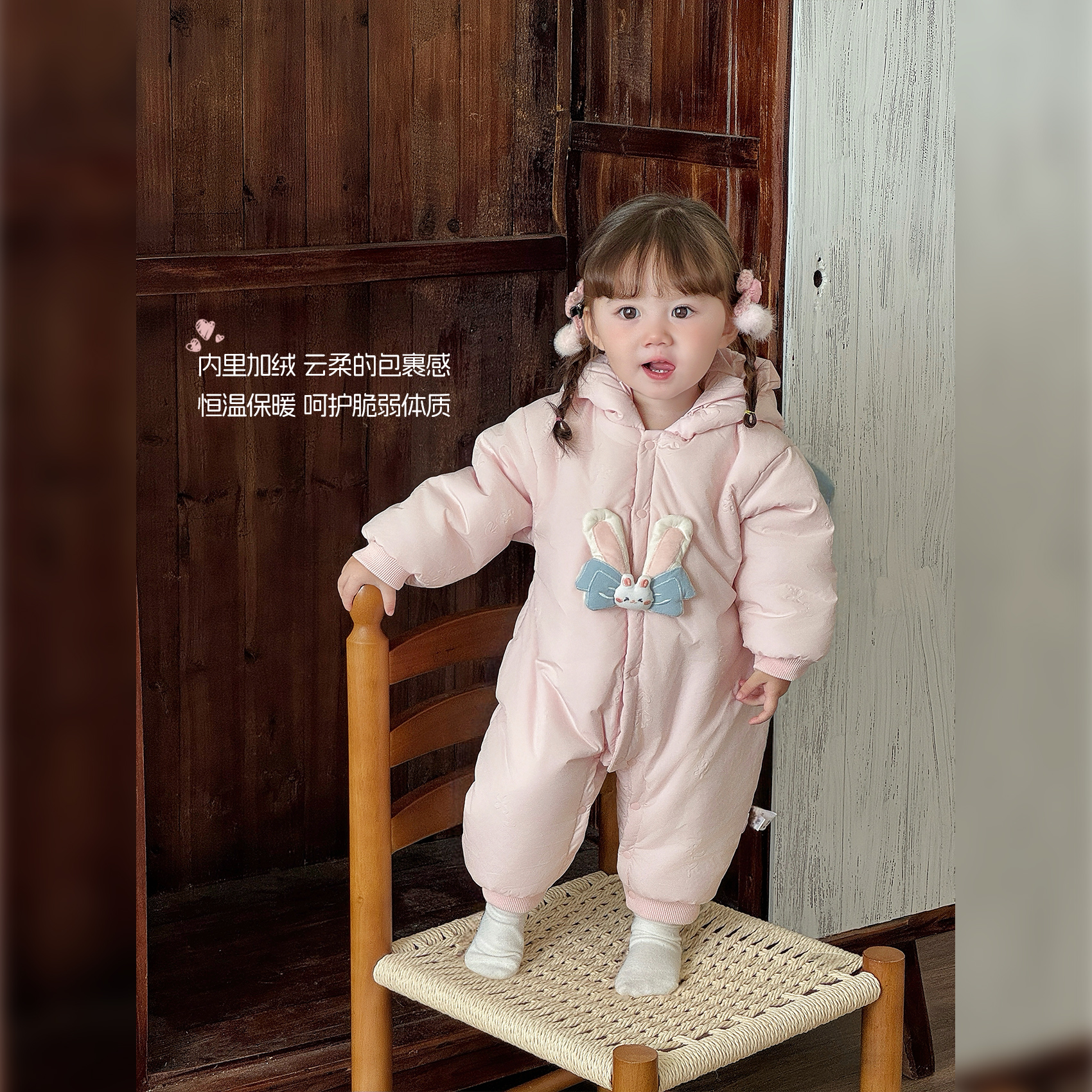 女宝宝衣服冬装婴儿夹棉连体衣冬季加绒保暖新生幼儿爬服婴童棉衣