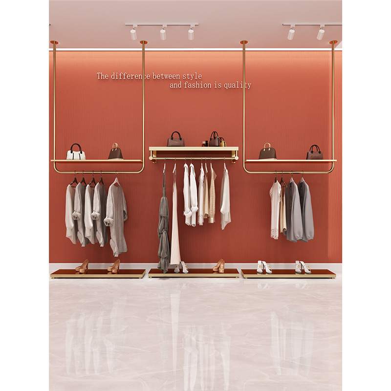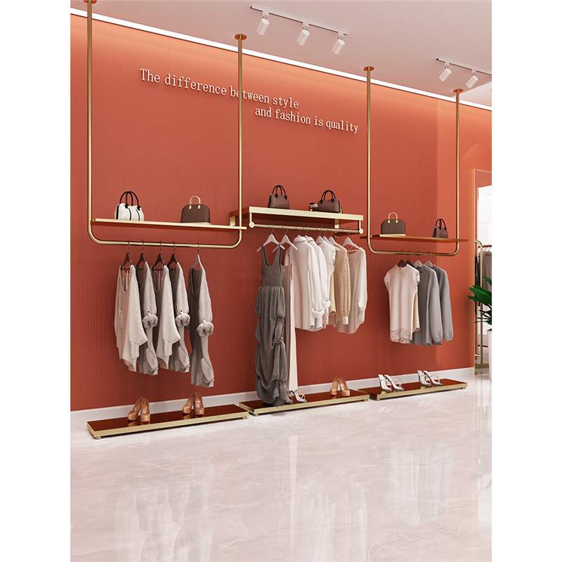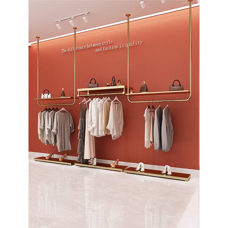 服装店展示架上墙壁挂式不锈钢钛金轻奢女装店衣服陈列货架吊挂杆