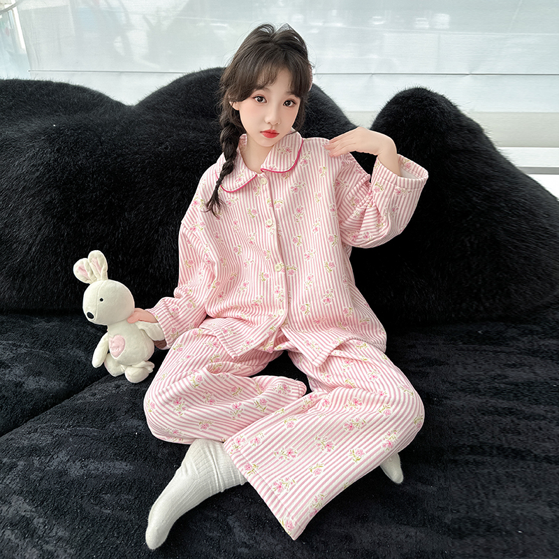 儿童睡衣2025新款秋冬款青少年女孩加厚套装女童公主风家居服洋气