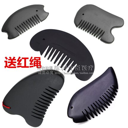 天然砭石头部刮痧板加厚按摩梳女全身通用经络刮痧梳宽齿按摩梳子