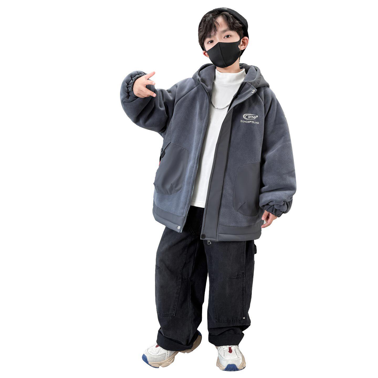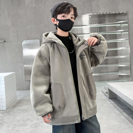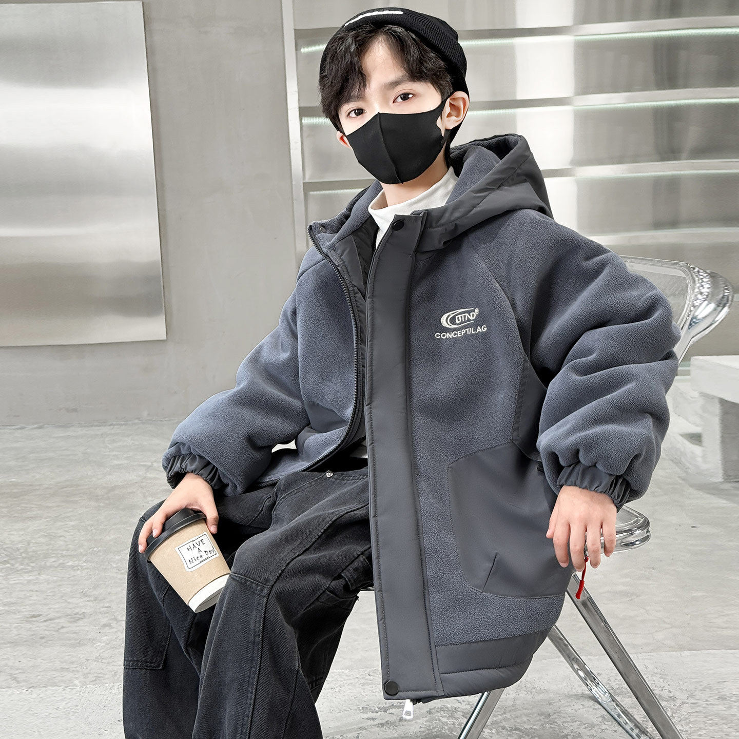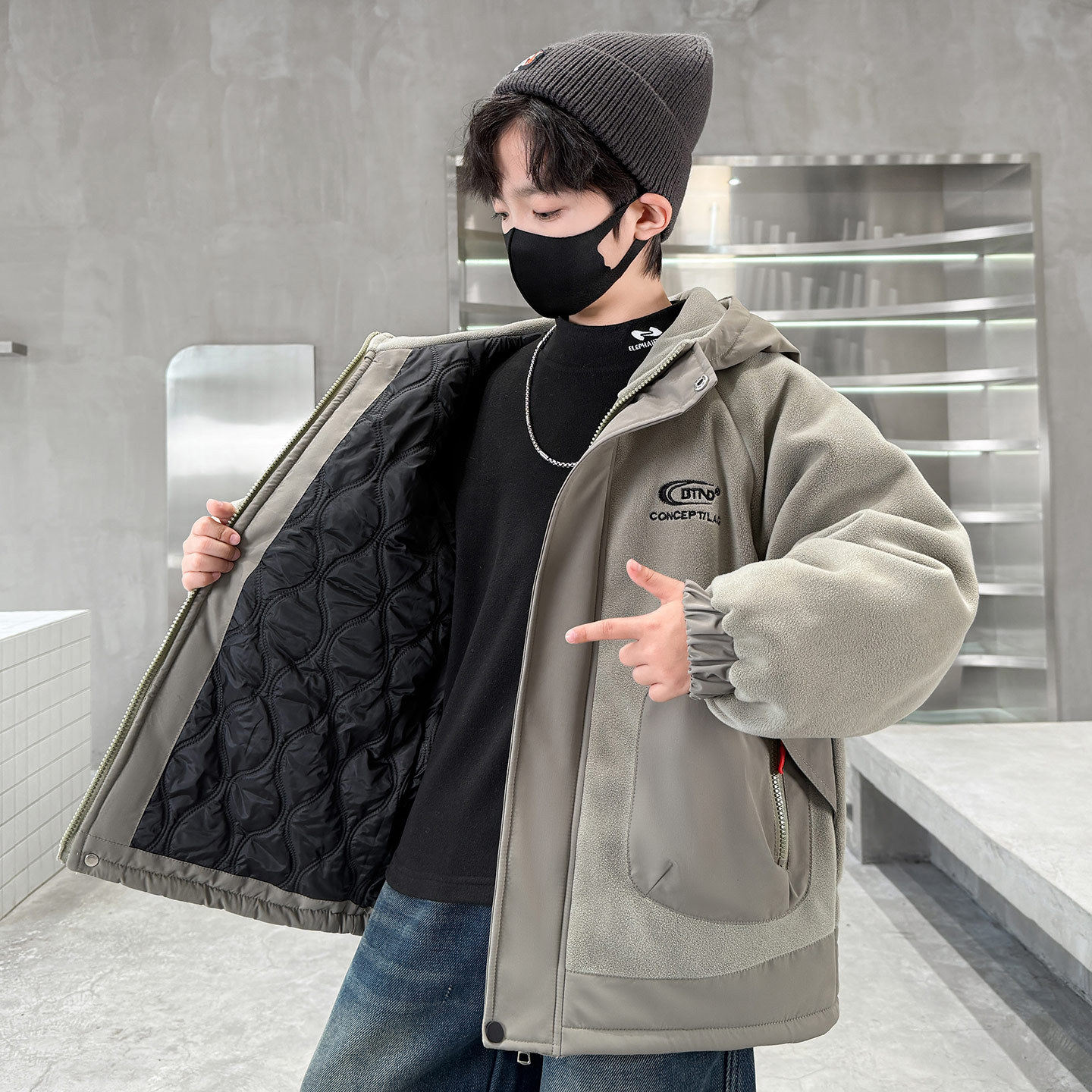 男童外套秋冬款2025新款冬季夹棉奥粒绒上衣中大童男孩冬装棉衣潮