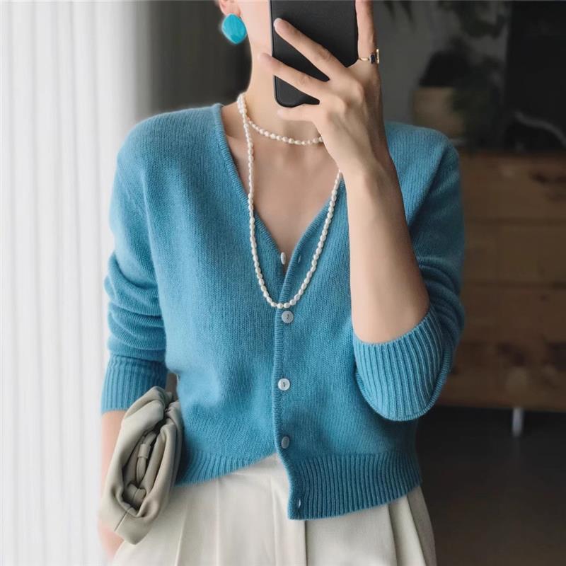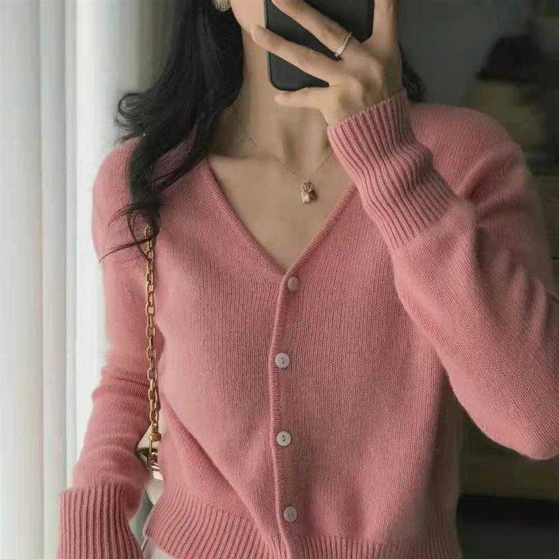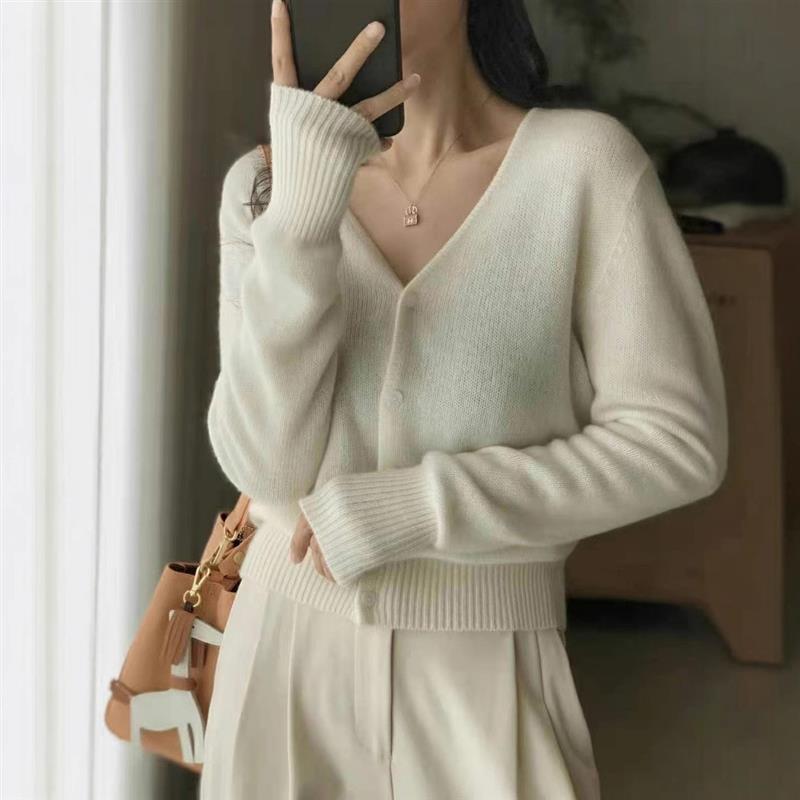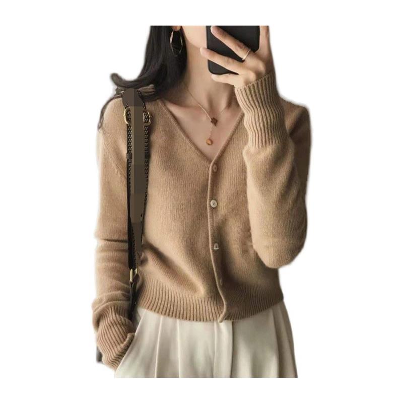 V领短款100羊毛针织开衫秋冬款韩版气质羊绒穿搭外穿毛衣女款