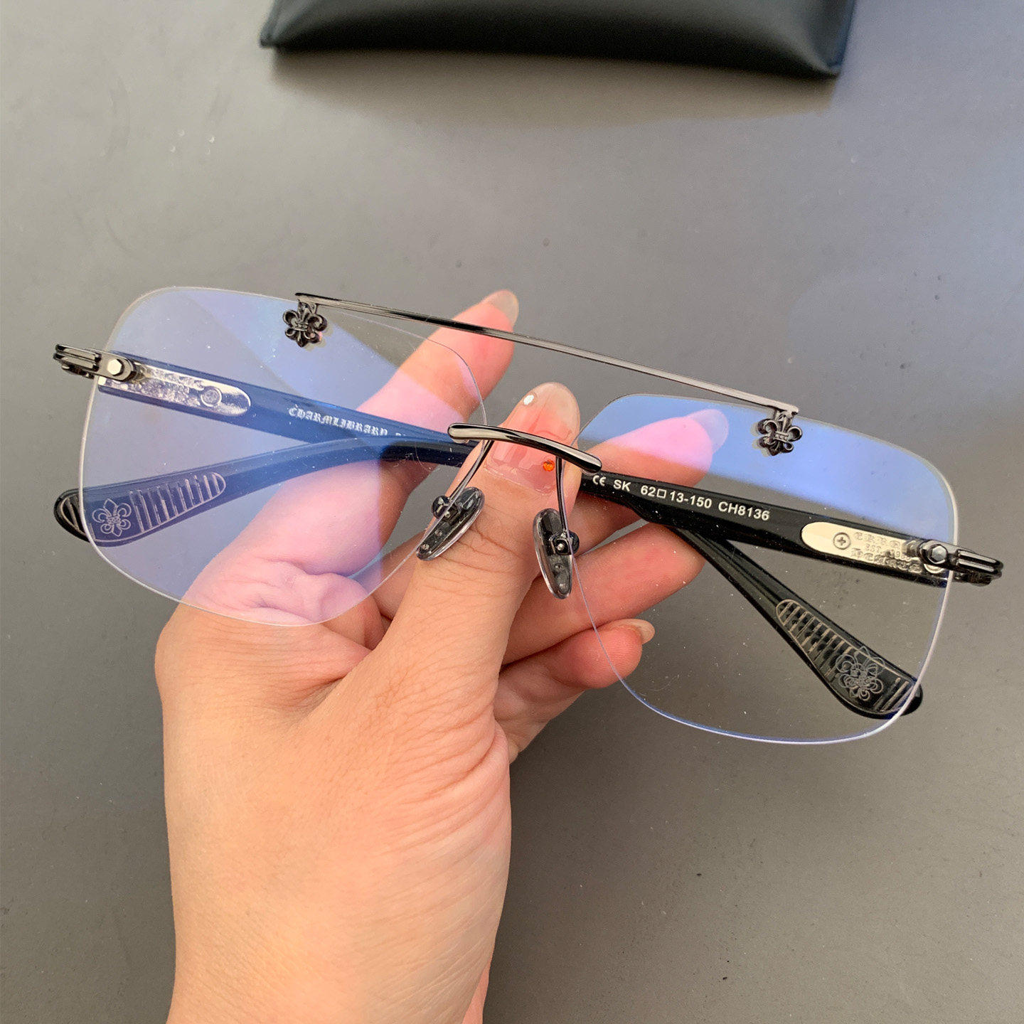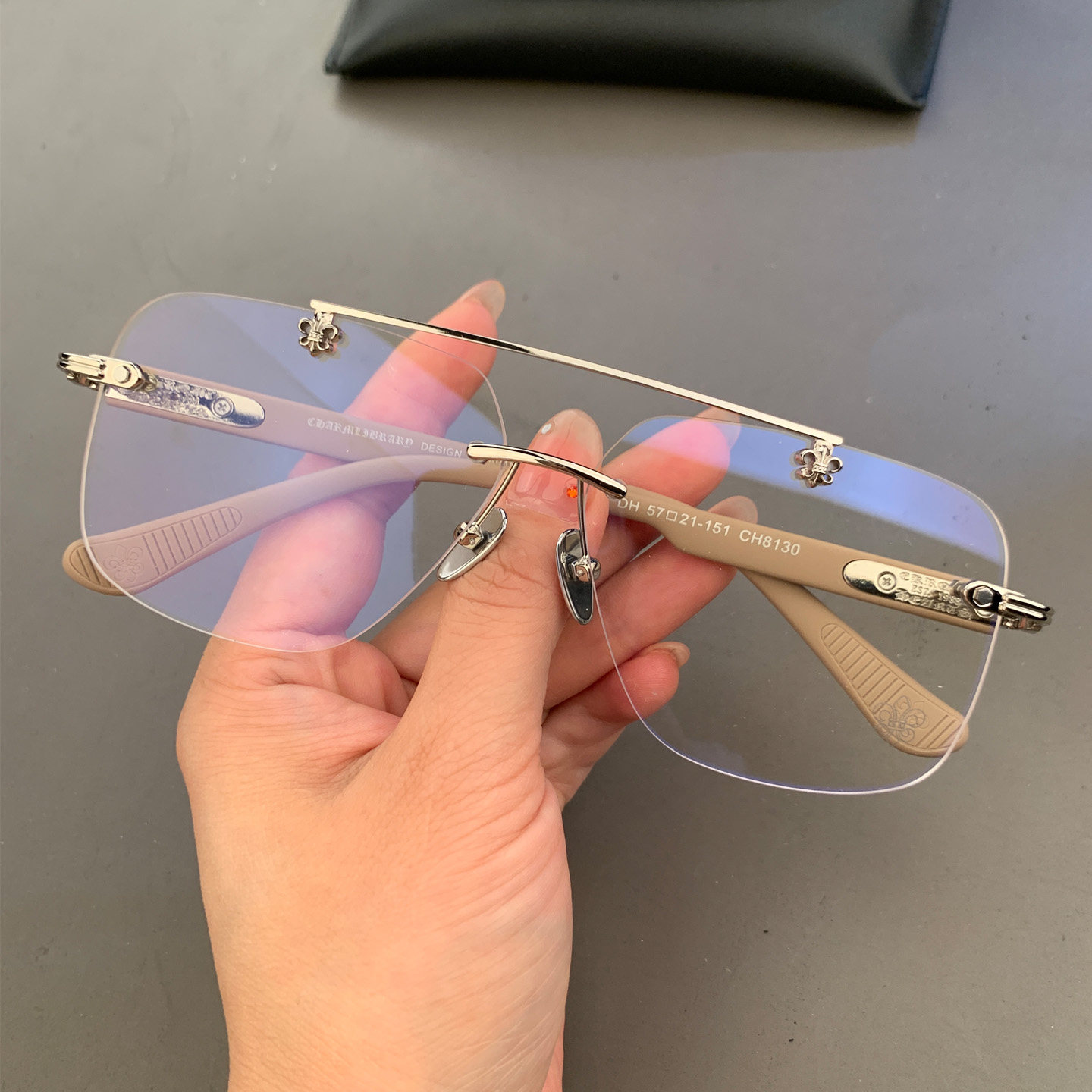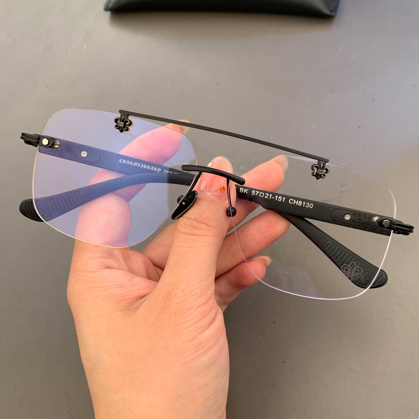 男女款无框打孔钛合金大脸型眼镜