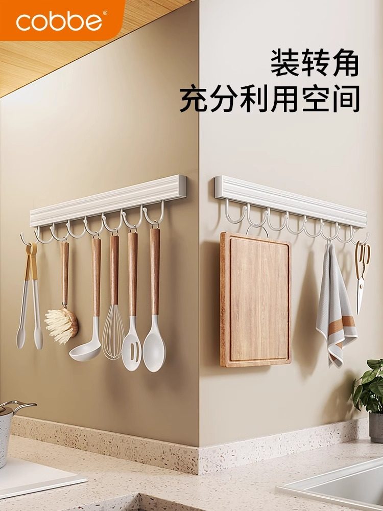 卡贝厨房挂钩挂杆置物架免打孔可移动锅铲勺子挂架壁挂式收纳架