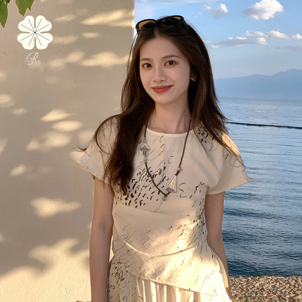 RESLIEEN「spill」洄游墨迹 松弛贵气高级感短袖背心衬衫半裙套装