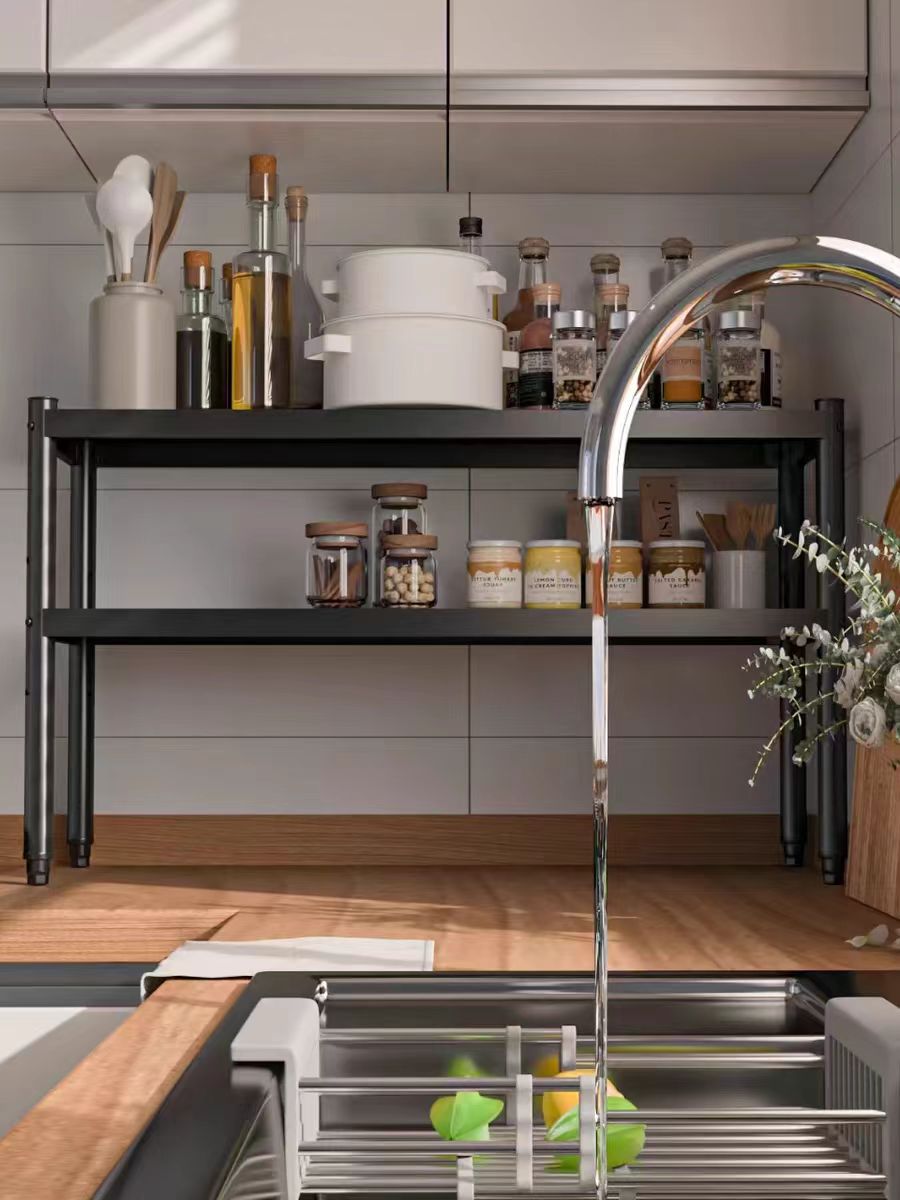 厨房置物架落地收纳架两层微波炉烤箱架家用储物三层多层收纳架子