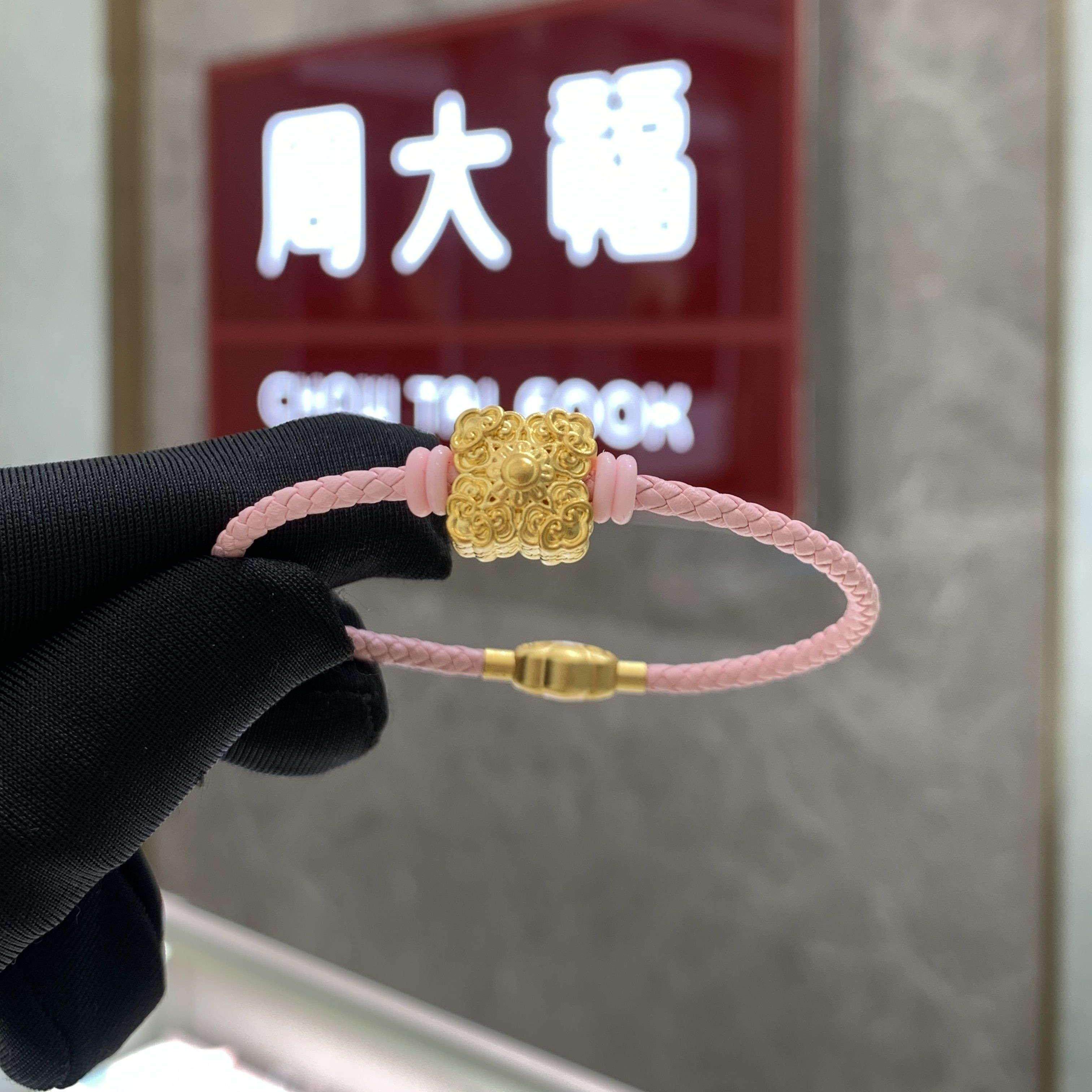 周大福四方祥云黄金吊坠