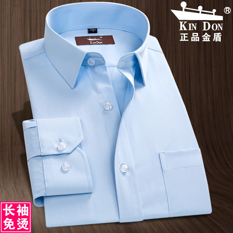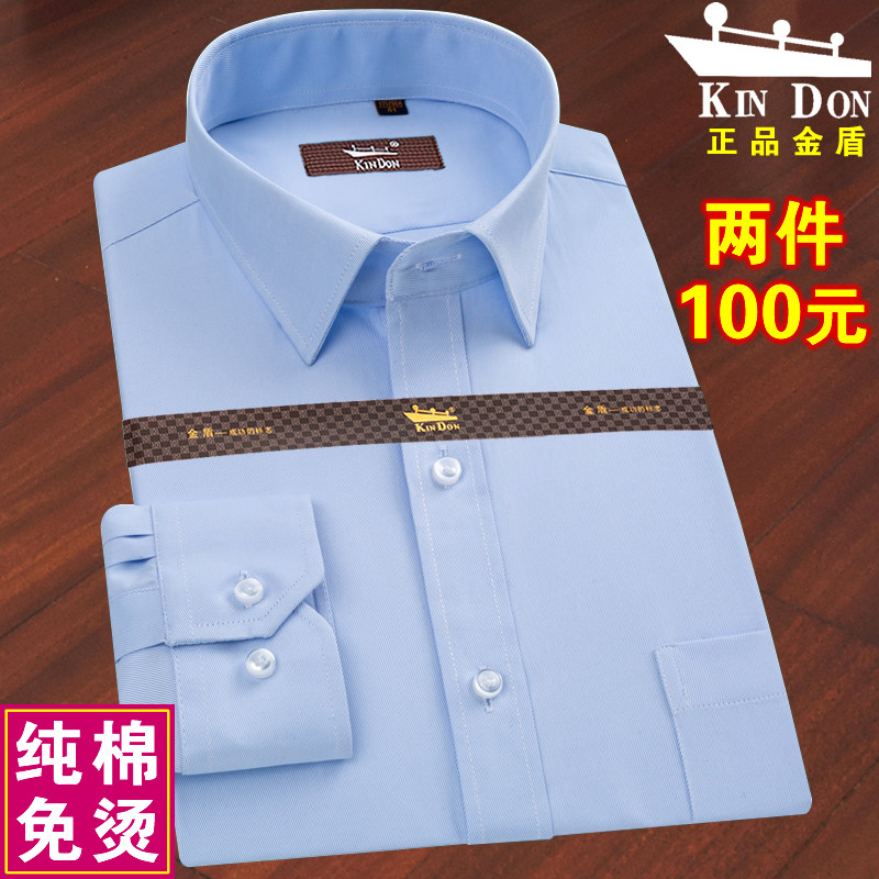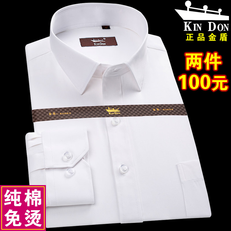 夏季金盾白衬衫男长袖纯棉免烫商务正装中年宽松大码短袖工装寸衫