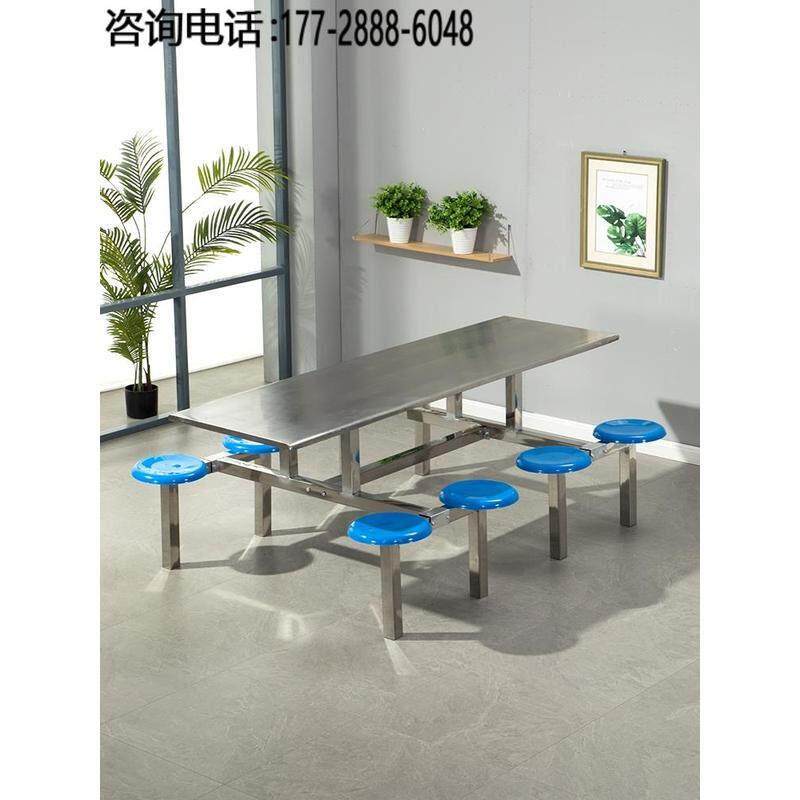 不锈钢连体快餐桌椅现代简约6人位加厚 安徽产8人位食堂餐桌椅组