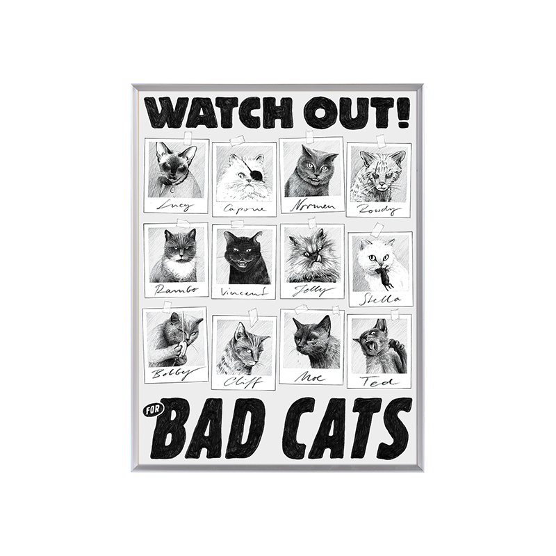 港画 北欧现代简约ins小心坏猫黑白灰装饰画高级感卧室床头挂画