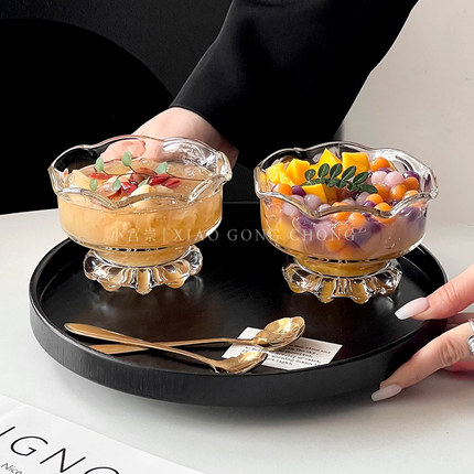 ins风冰花玻璃甜品碗高颜值冰淇淋碗水果酸奶碗创意糖水碗早餐碗