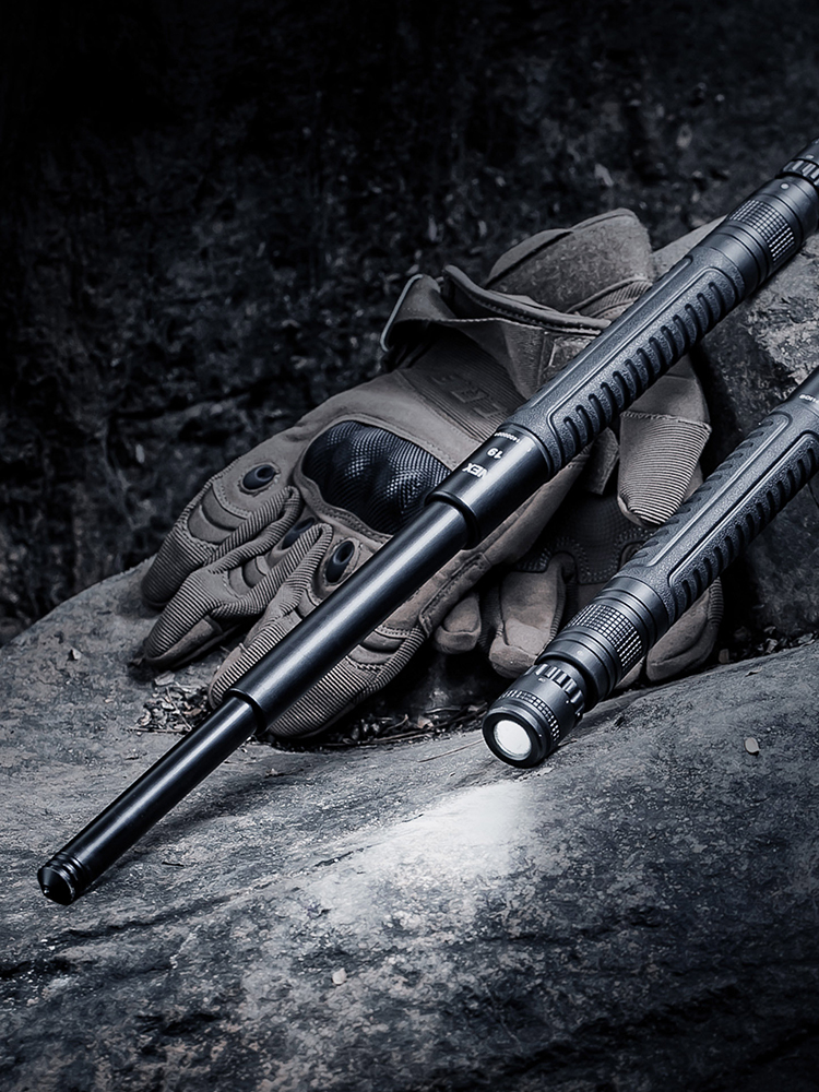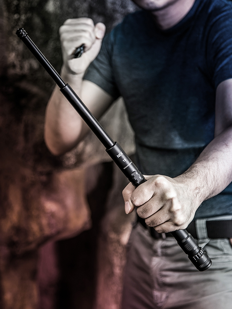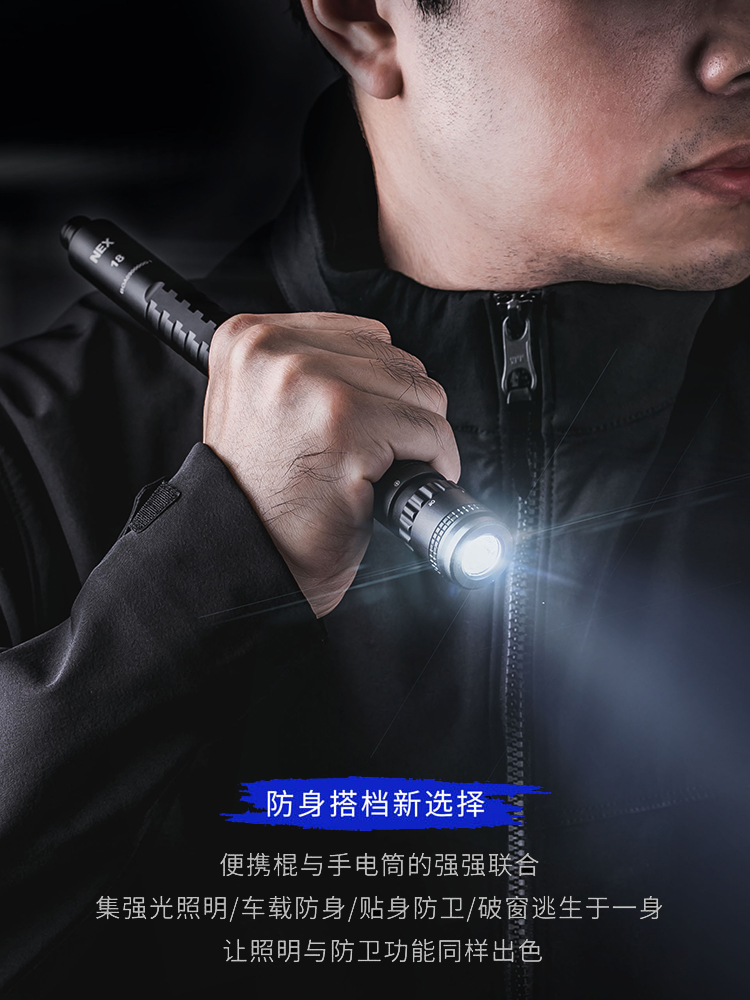 纳丽德带灯甩棍N18/N15/N19L强光手电筒防身武器车载合法机械伸0