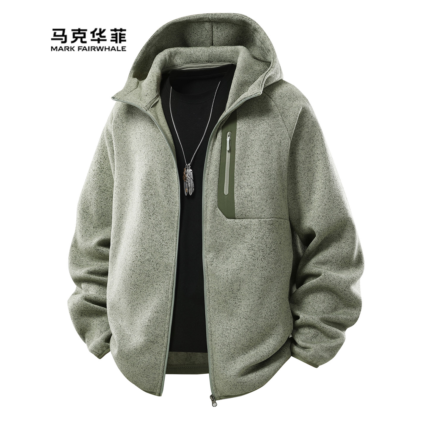 Mark Fairwhale马克华菲冬季连帽卫衣男款拉链开衫休闲风户外夹克