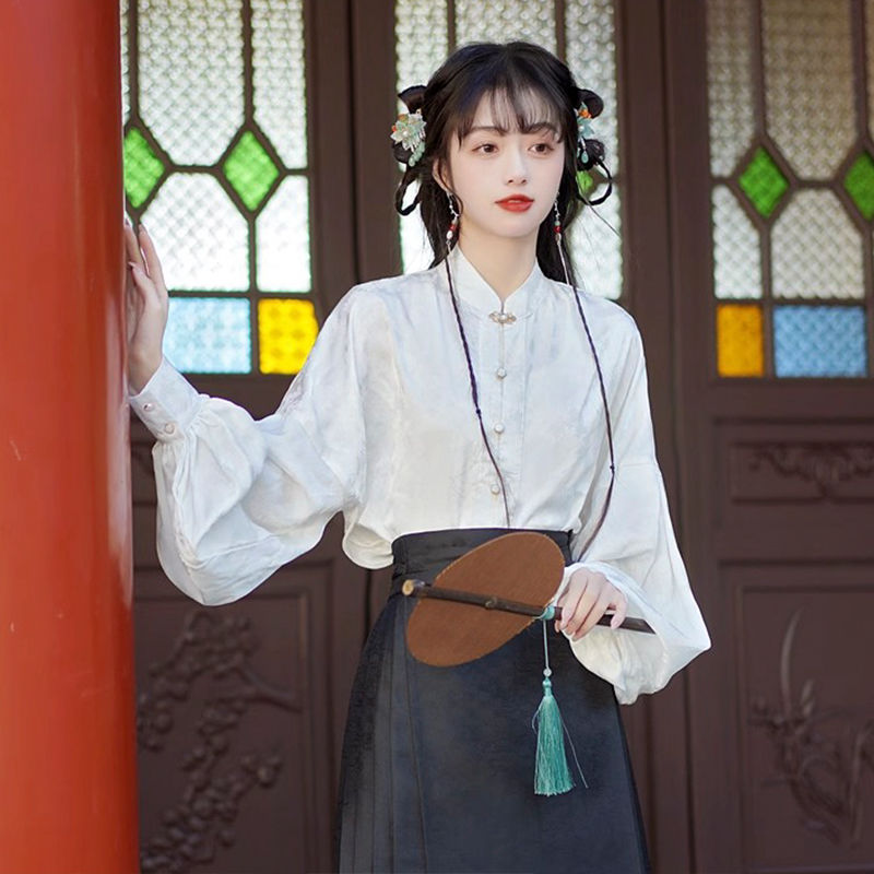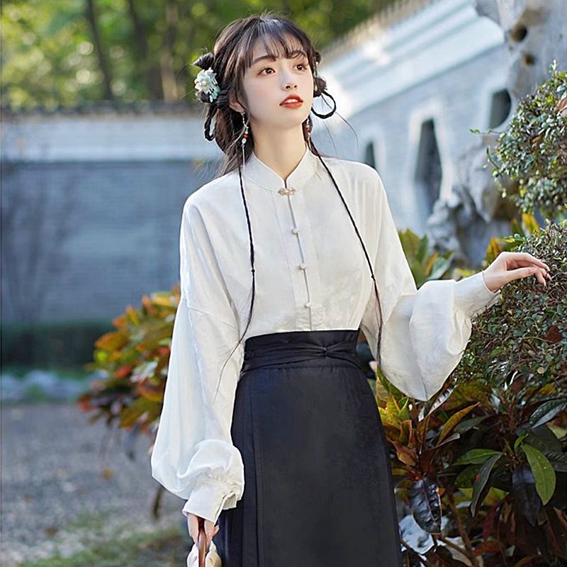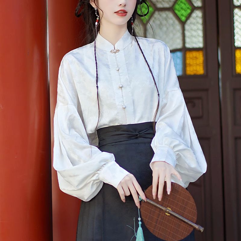 搭配马面裙的上衣衬衫春秋季复古立领长袖新中式古风改良汉服唐装