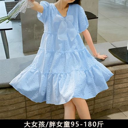 胖女孩公主裙加肥加大大码初中高中学生夏装大童裙子胖女童连衣裙