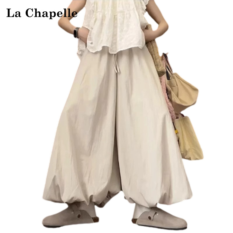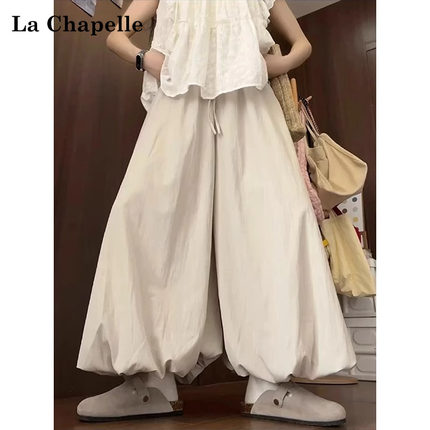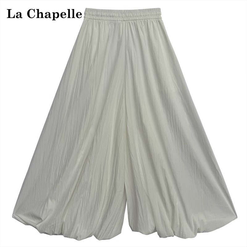 拉夏贝尔灰色花苞裤女夏季新款高腰宽松垂感裙裤冰丝灯笼阔腿裤子