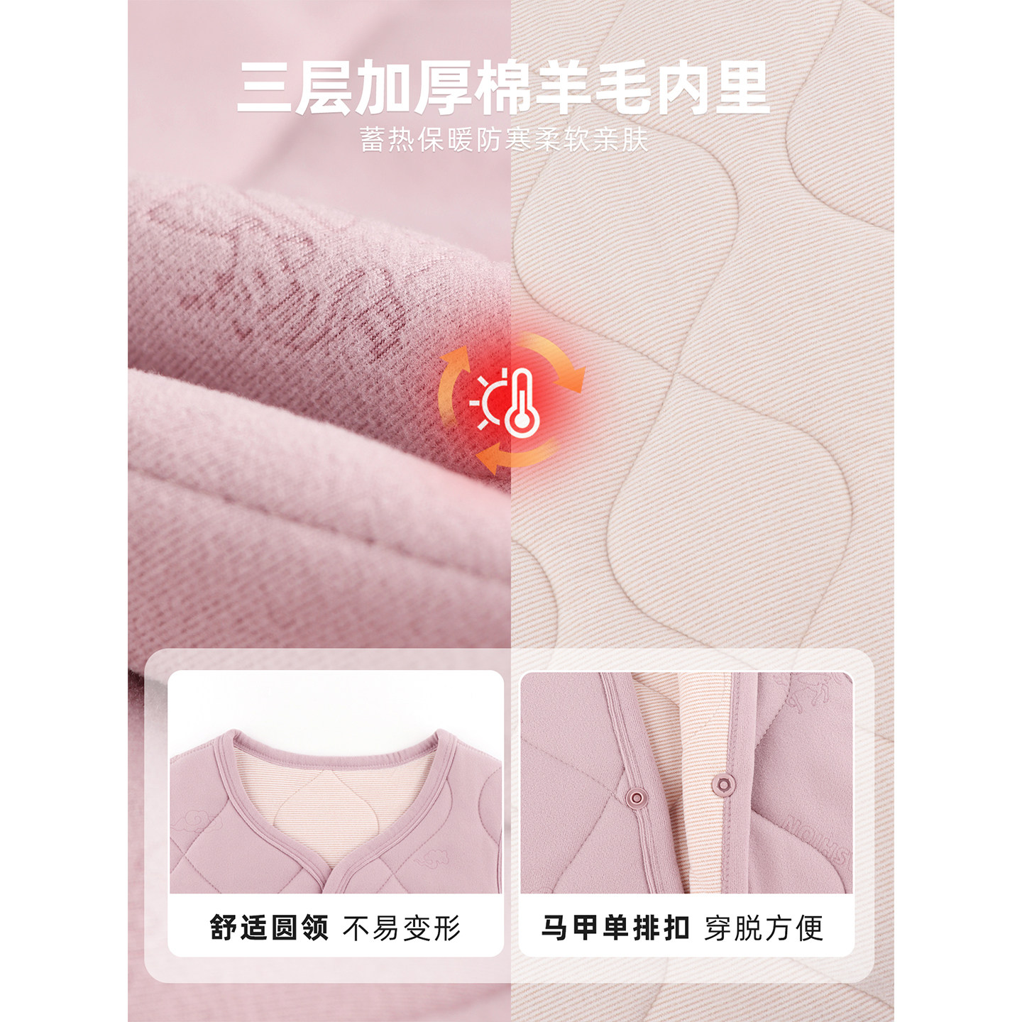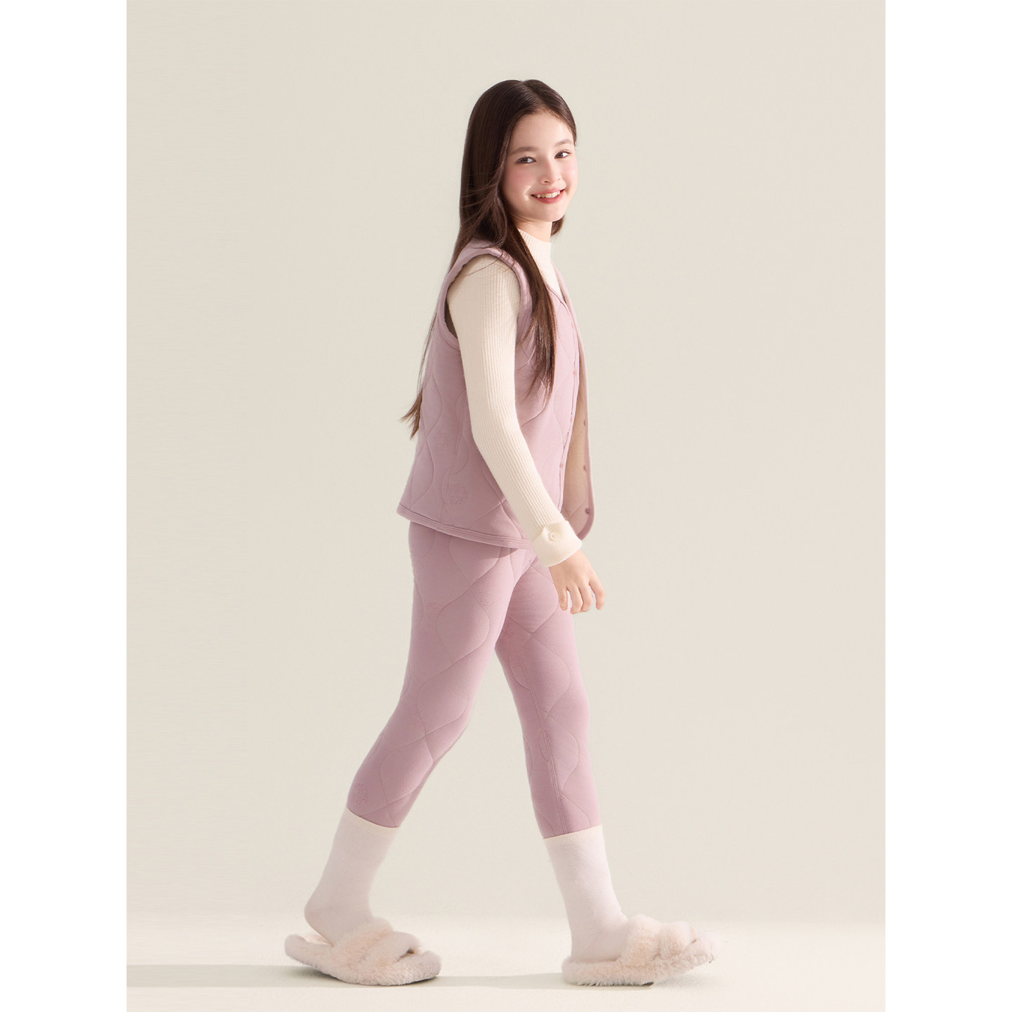 Amybaby女童套装冬季2025新款校服神器加绒加厚打底马甲保暖长裤