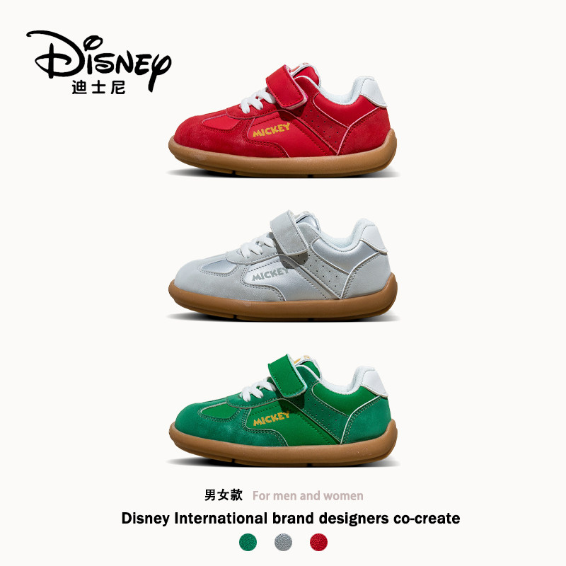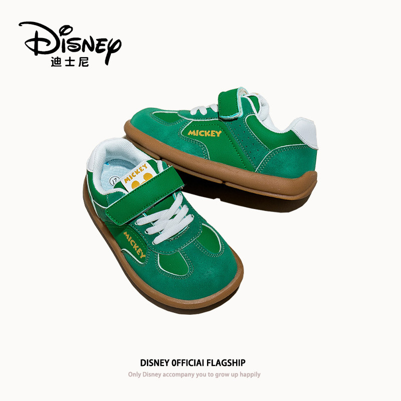 迪士尼女童鞋子2025年春秋季休闲板鞋中大童绿色德训鞋时尚儿童鞋
