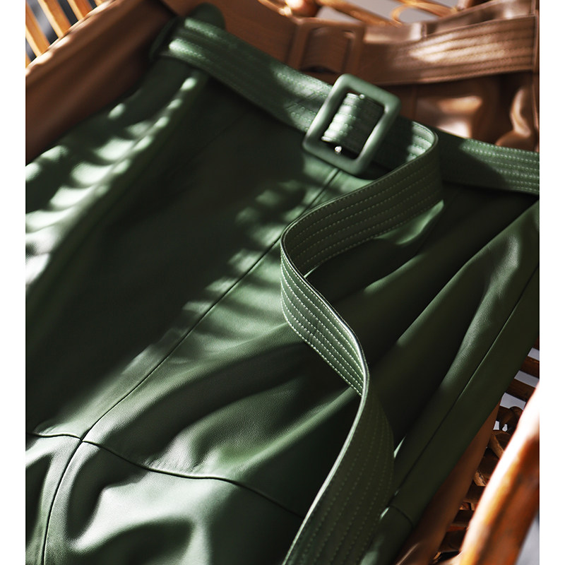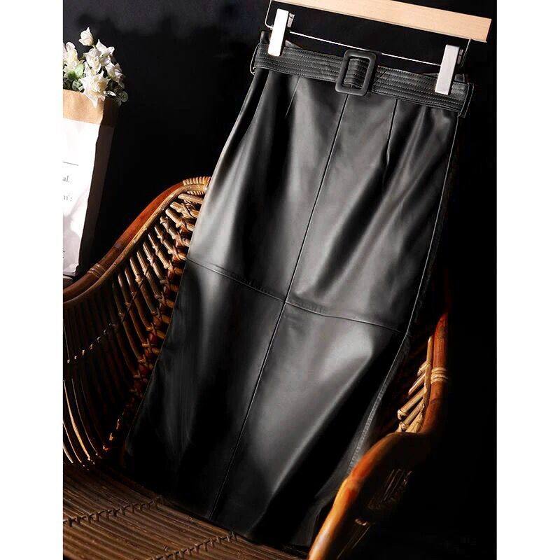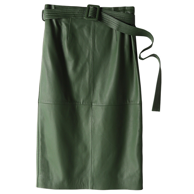欧洲站2025秋冬新款真皮皮裙绵羊皮裙立体拼接女高腰中长款半身裙