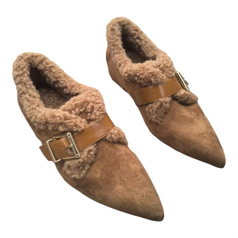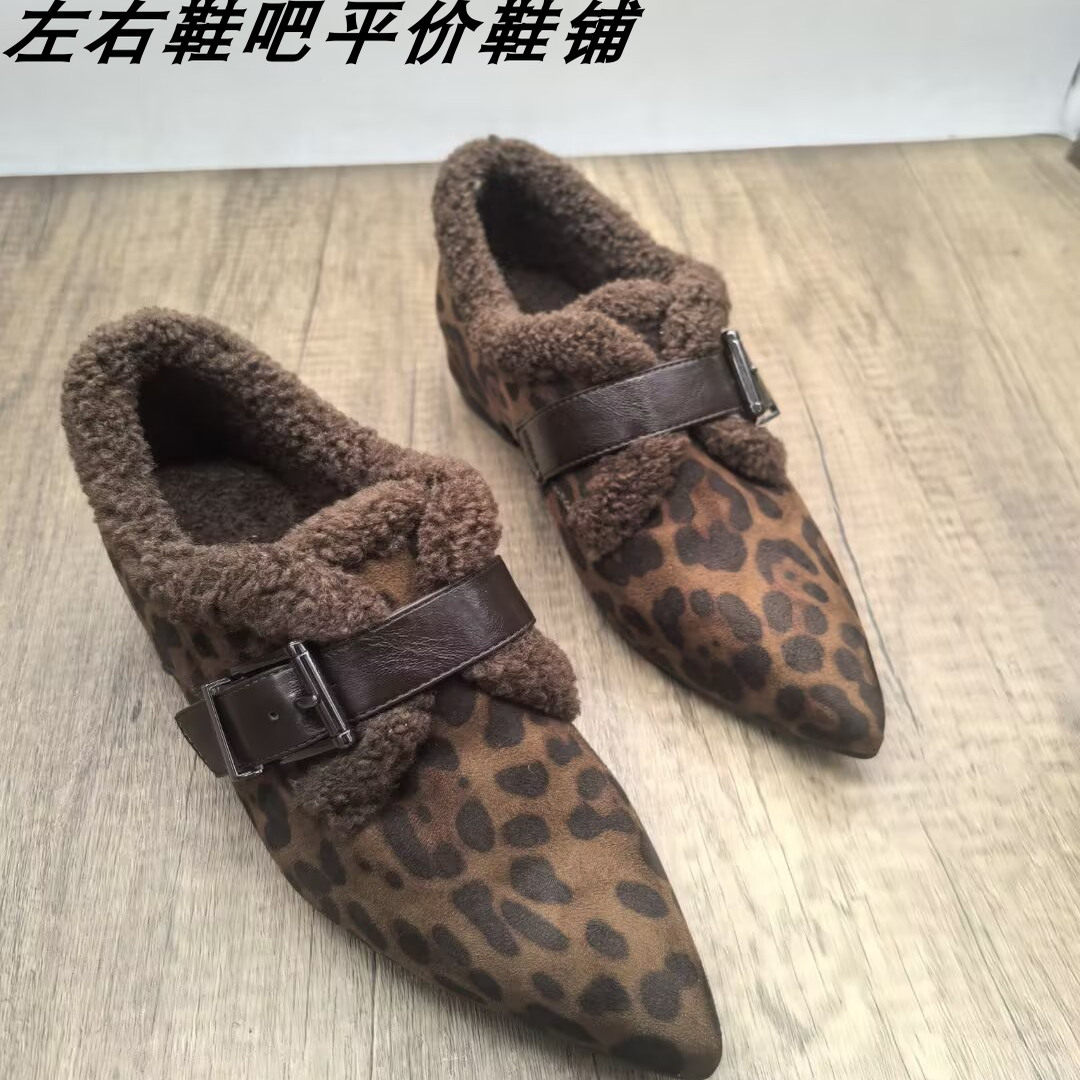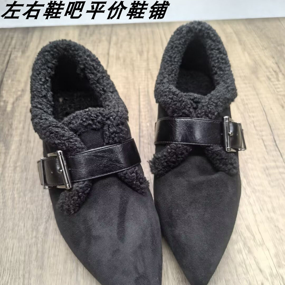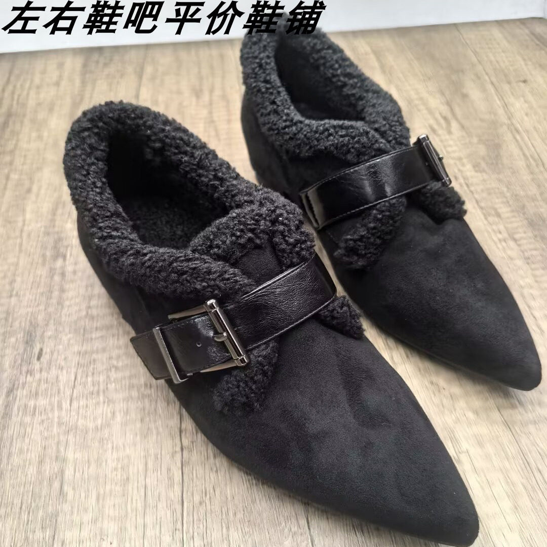 毛毛鞋女尖头皮带扣内增高保暖加绒豆豆鞋乐福鞋