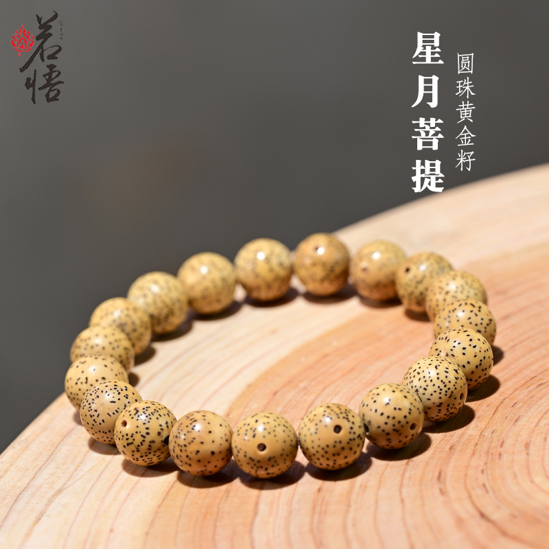 海南星月菩提圆珠原生态零脱脂鸡油黄高密度大尺寸手串素珠单圈