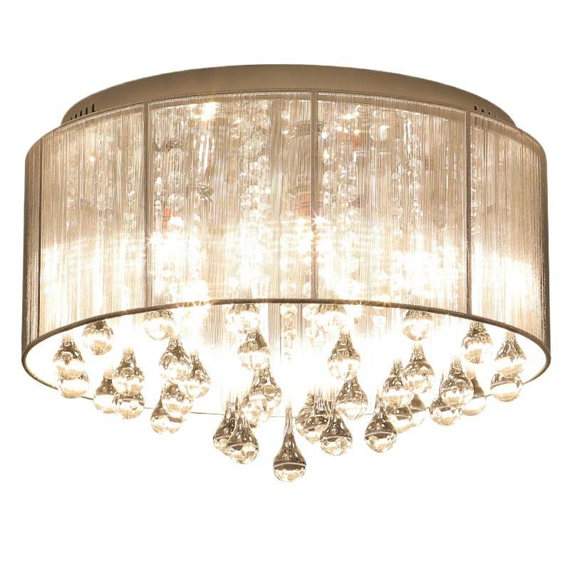 现代简约布艺吸顶灯主卧室水晶房间温馨浪漫圆形创意个性书房灯具