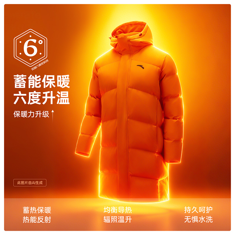 安踏六度芯羽绒丨中长款运动羽绒服男装2025冬季新款鸭绒棉服外套
