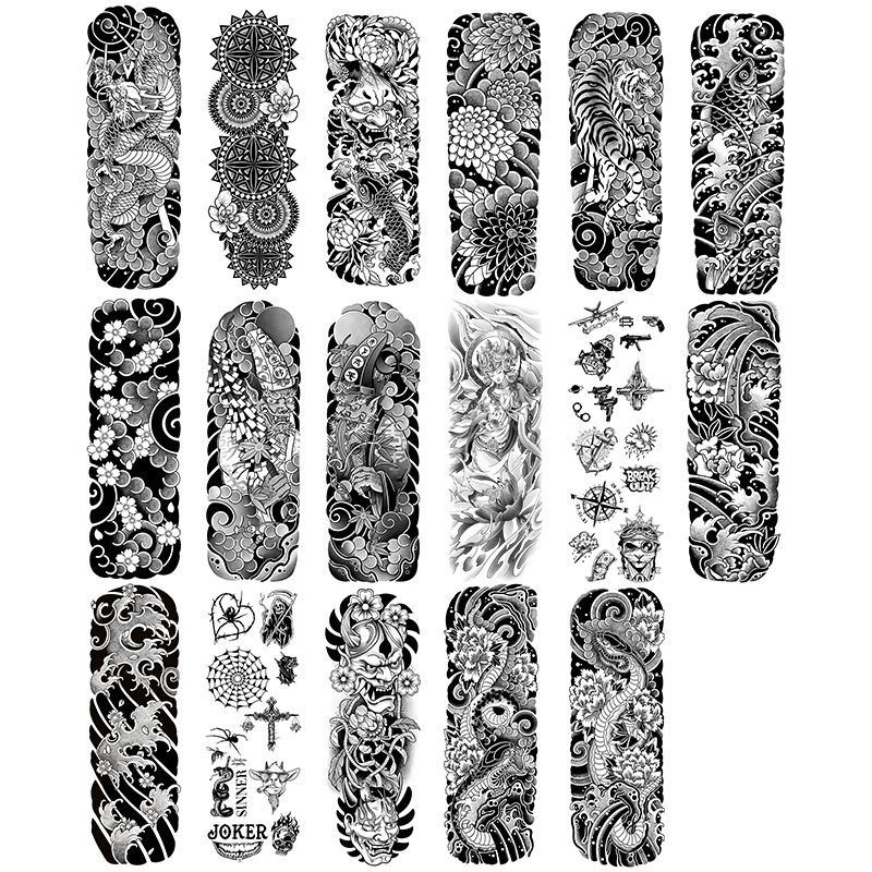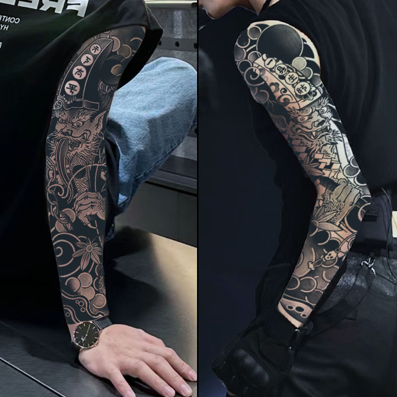 花臂高级感纹身贴男防水持久全臂仿真刺青不反光果汁贴纸老传统