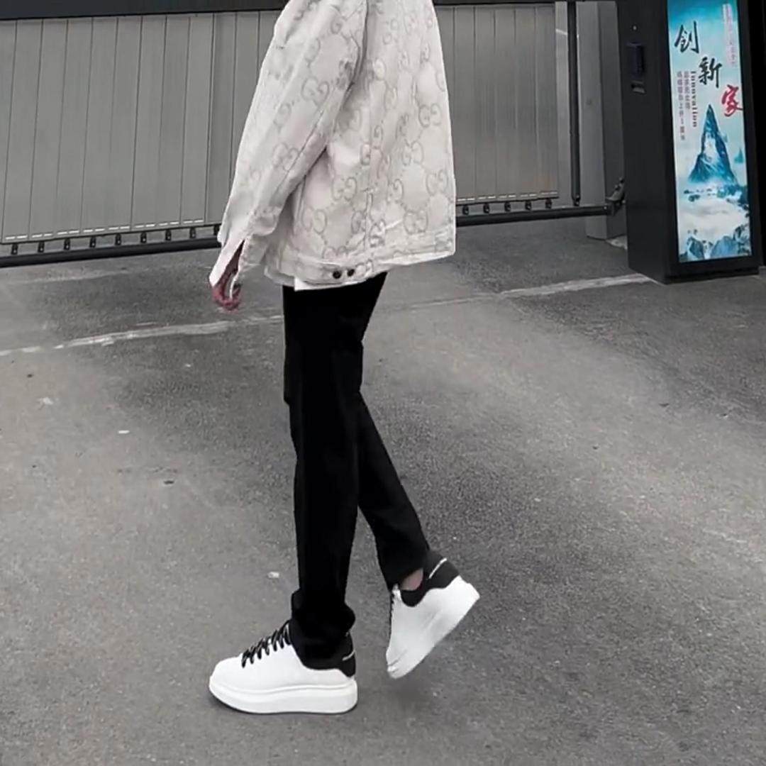 秋冬加绒加厚黑色牛仔裤男宽松显瘦直筒裤子潮流百搭黄泥染九分裤
