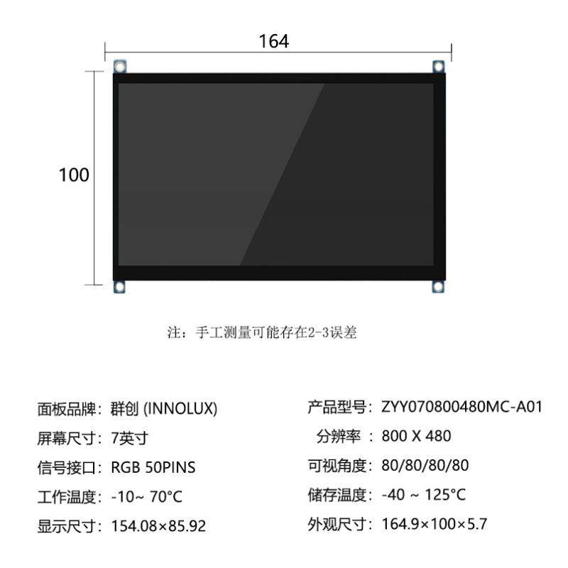 群创7寸液晶串口屏800*480电容触摸高清显示RGB工业设备屏幕50Pin