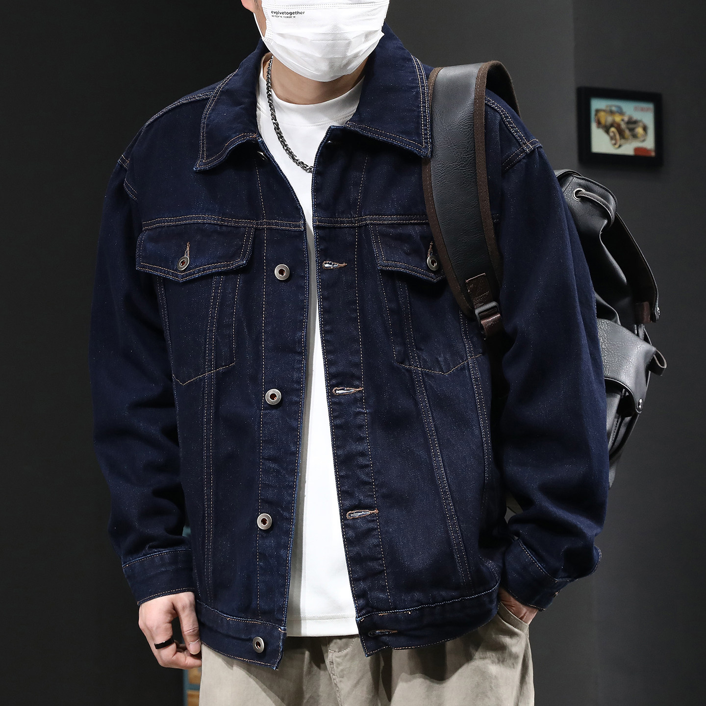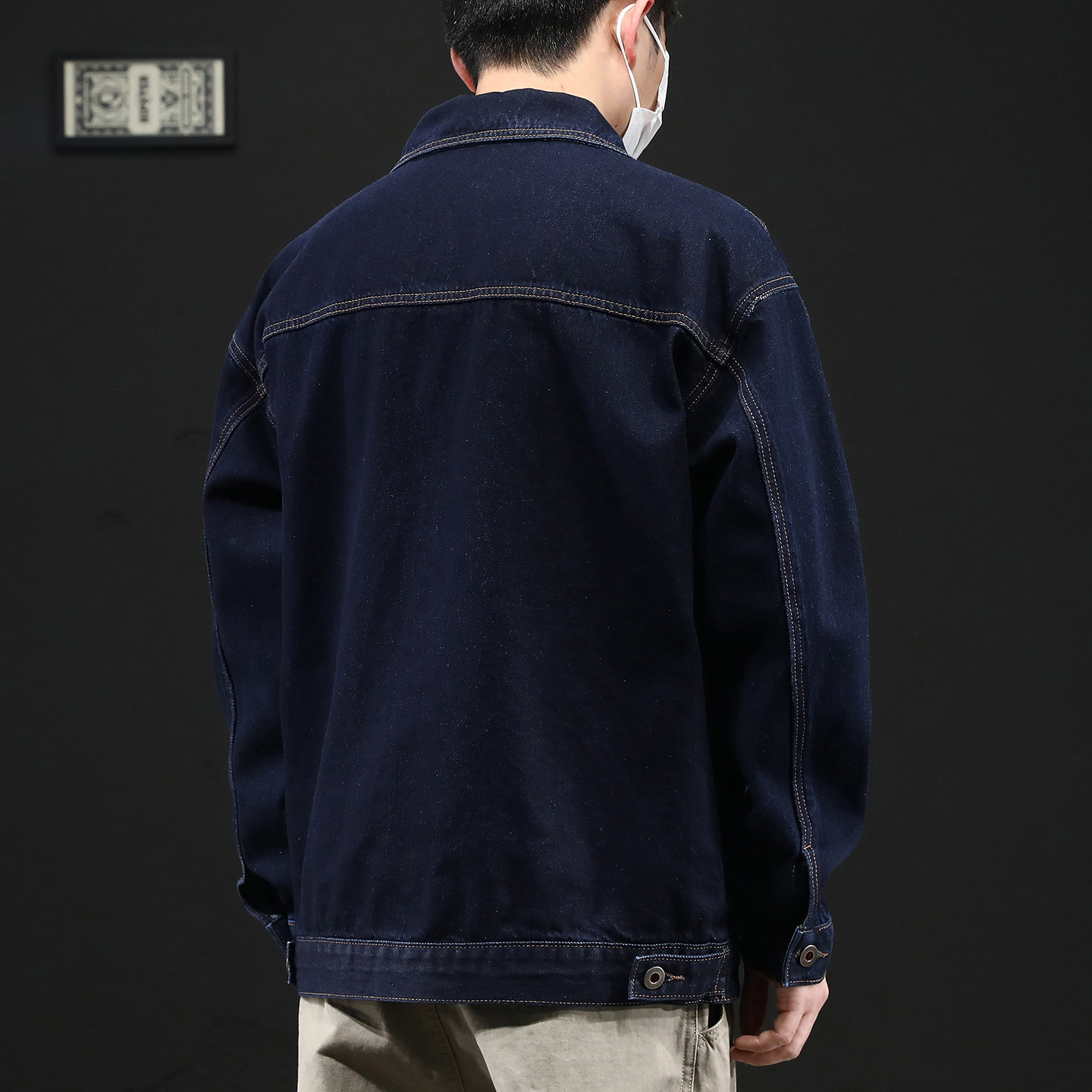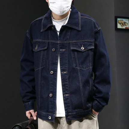 高端日系复古水洗原牛蓝牛仔外套男春季休闲宽松大码夹克上衣潮