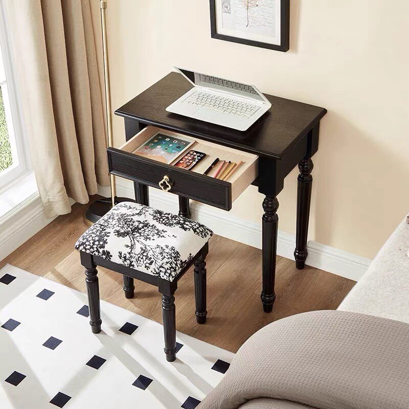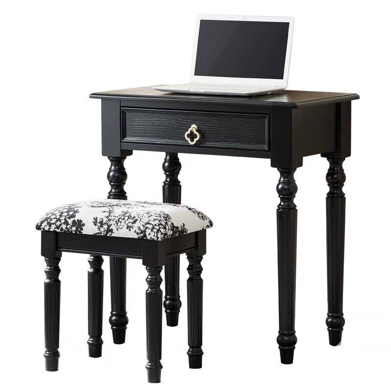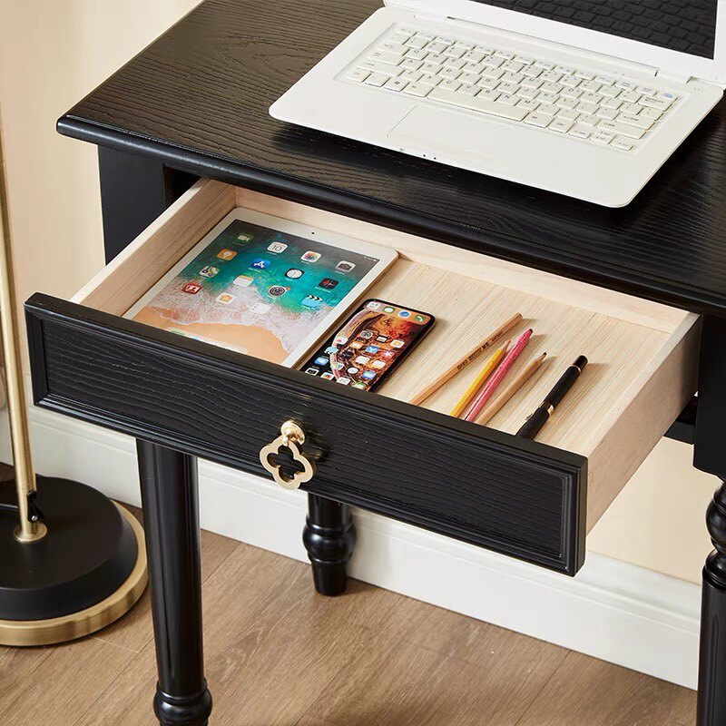法式书房写字桌小户型卧室实木家用儿童学习桌美式黑色复古小书桌