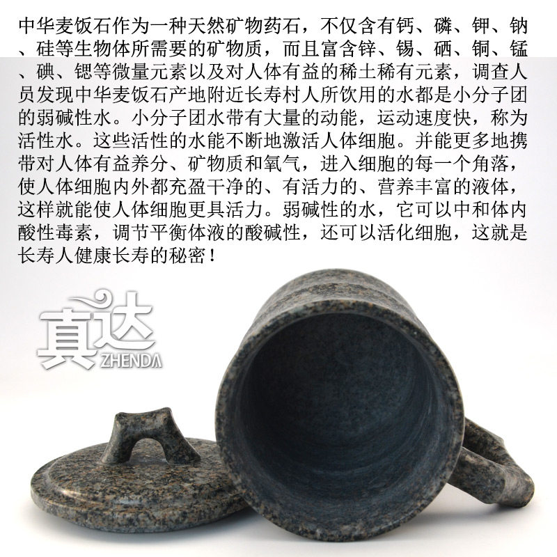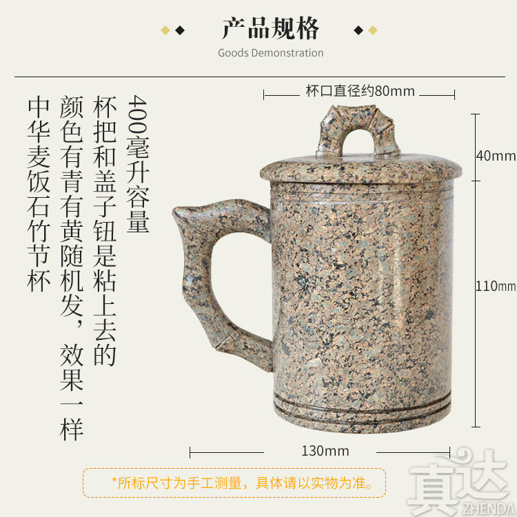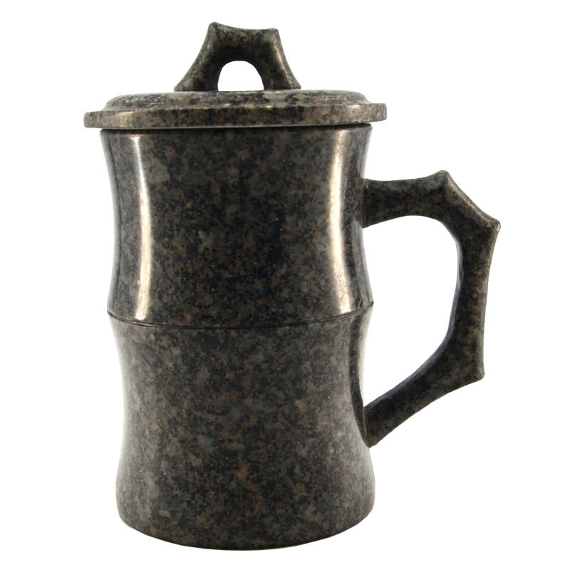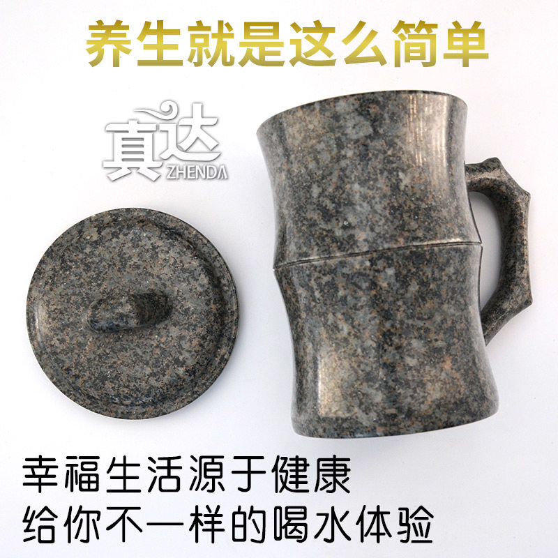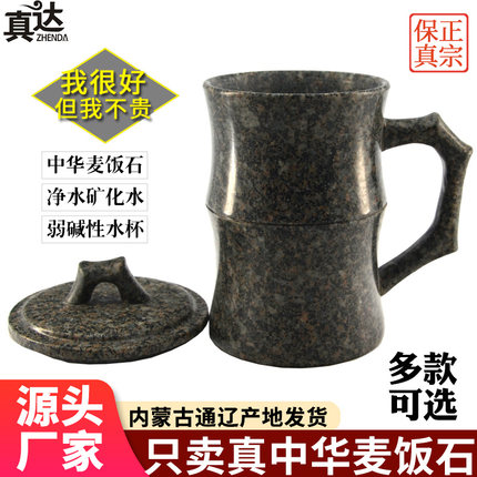 内蒙古天然中华麦饭石水杯子茶杯马克杯带盖竹节杯定制弱碱水杯