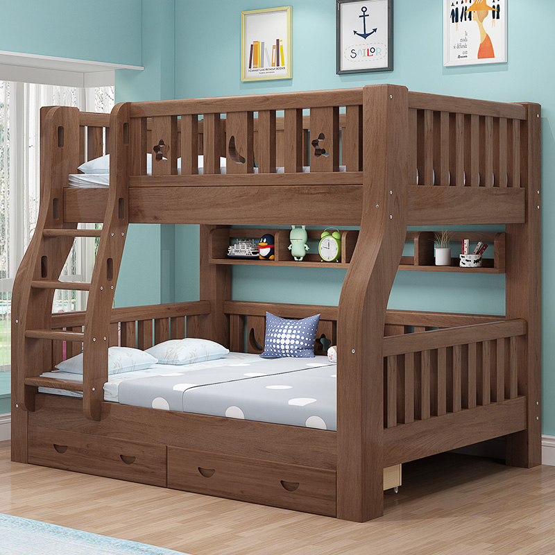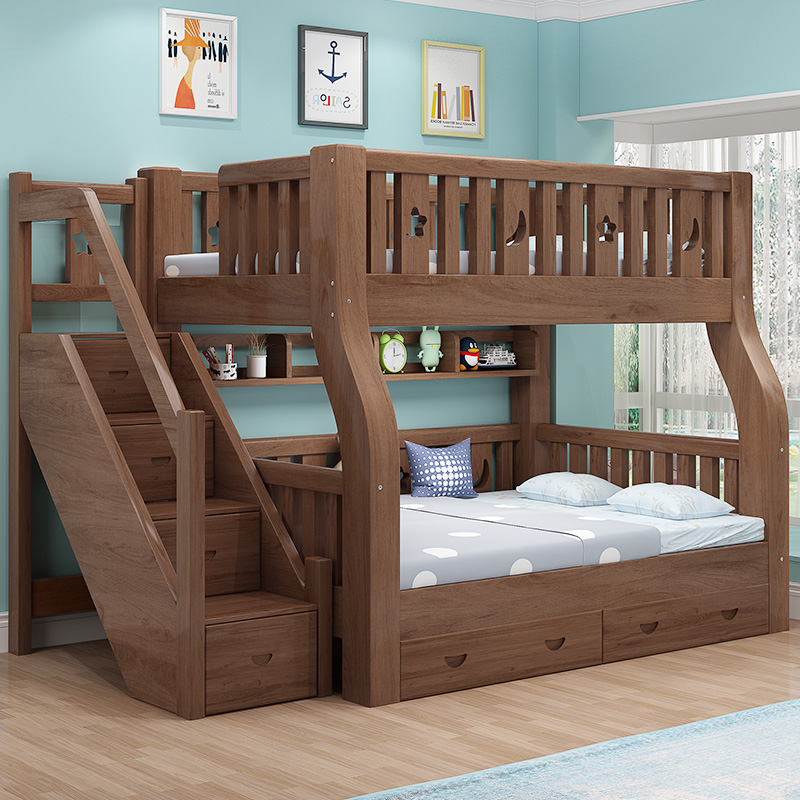 胡桃木上下床双层床两o层儿童床高低床小户型子母床双人上下铺木