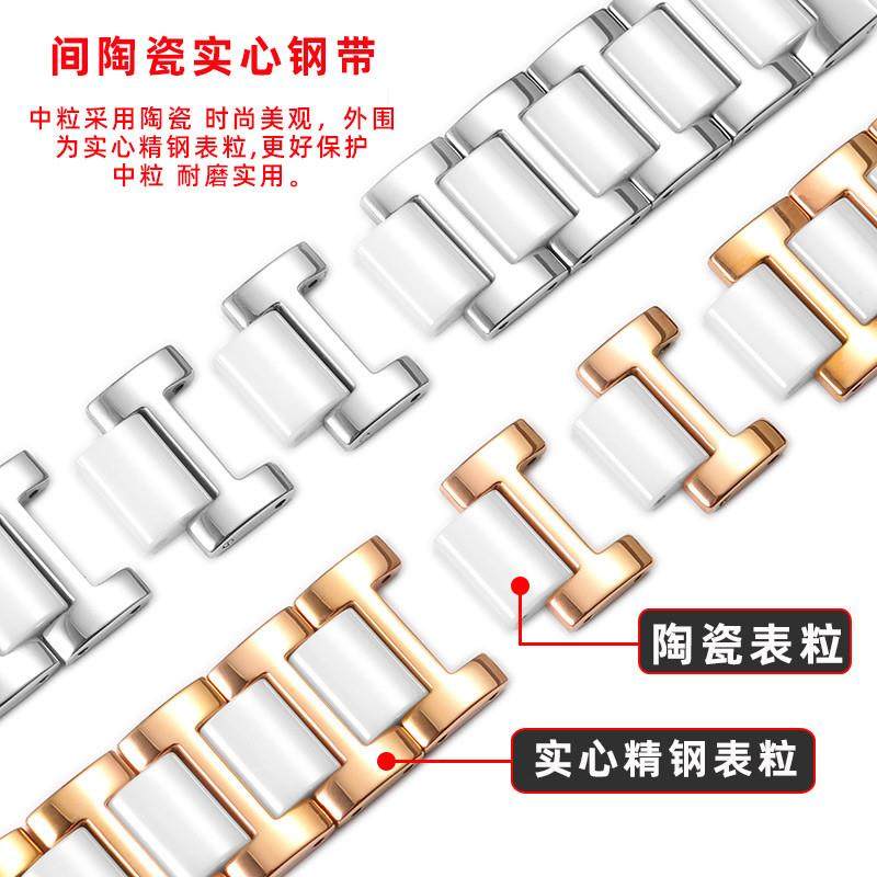 陶瓷不锈钢表带适配肖邦r萧邦罗西尼天梭铁达时卡西欧手表链女15m