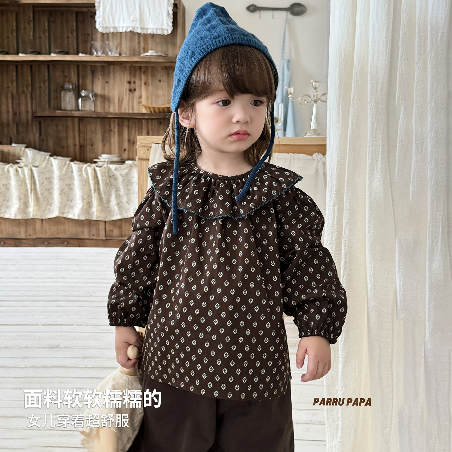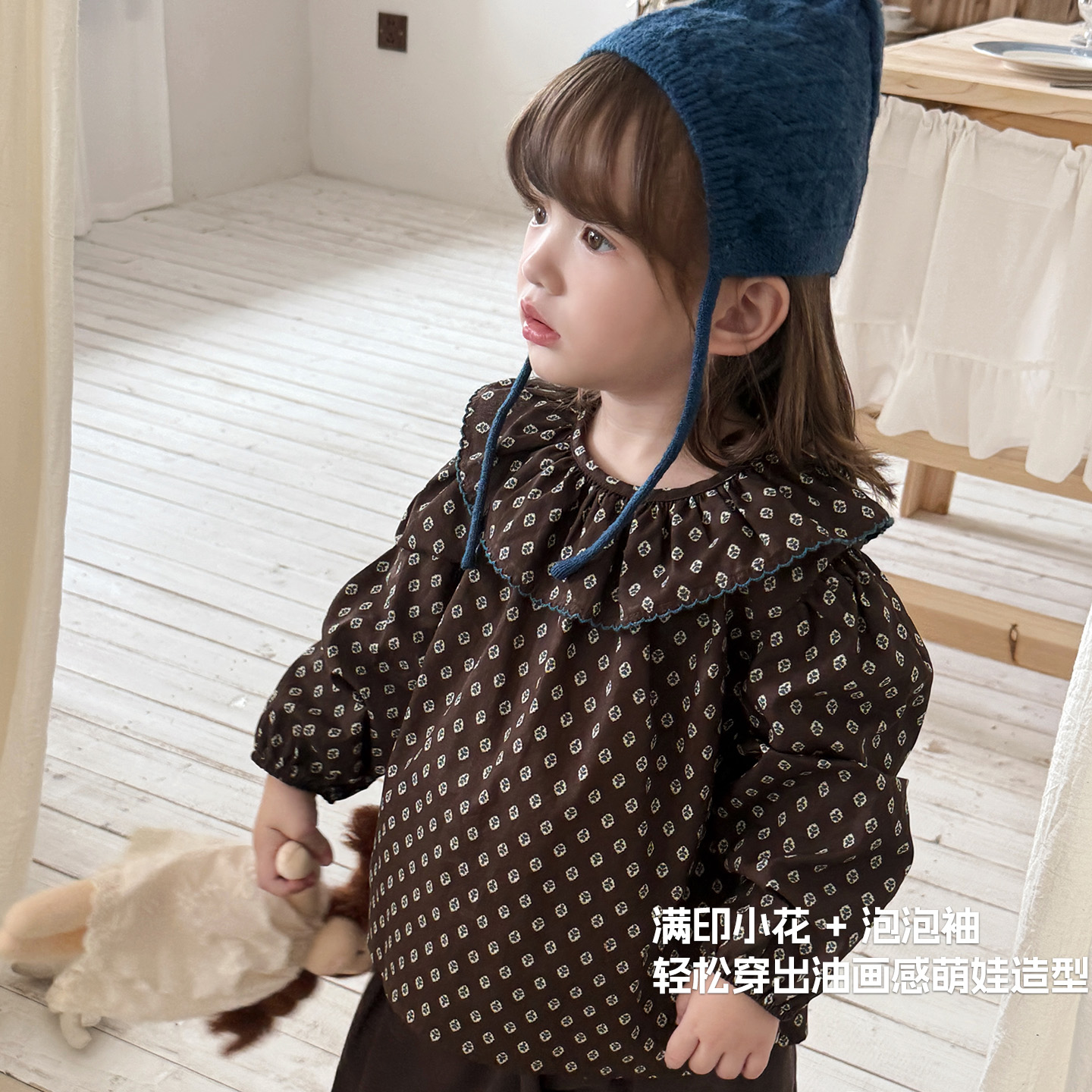 女童衬衫春秋2025新款儿童秋装满印碎花大翻领娃娃衫宝宝秋装衬衣