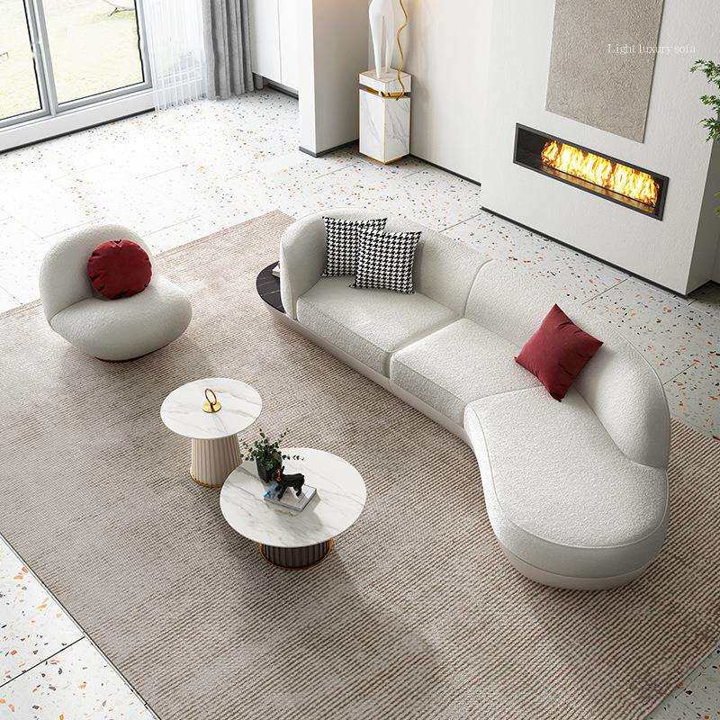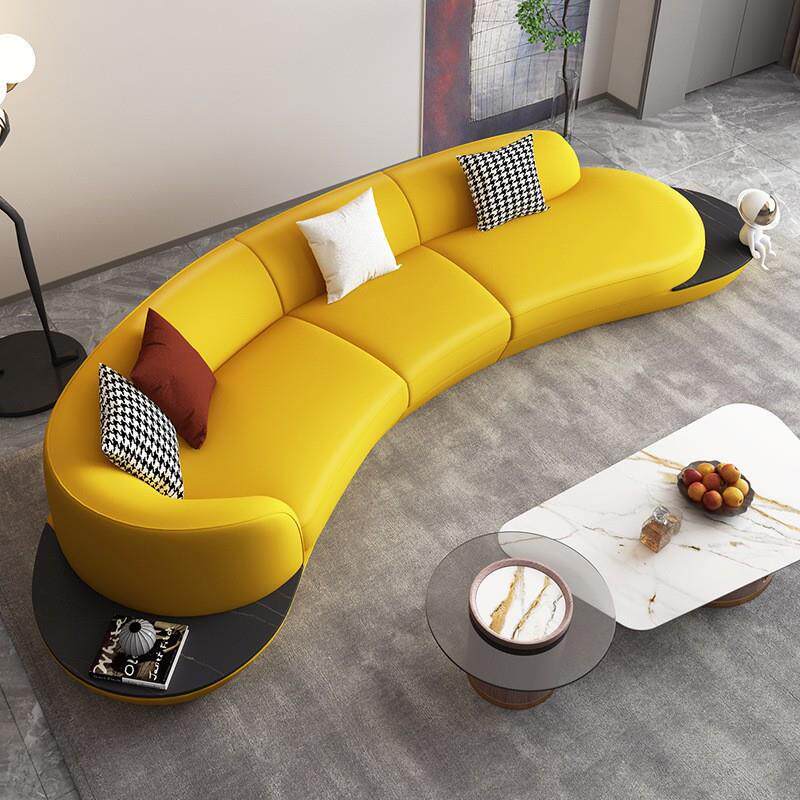 北欧轻奢客厅成套家具设计师款创意弧形扁豆沙发三人位月亮沙发