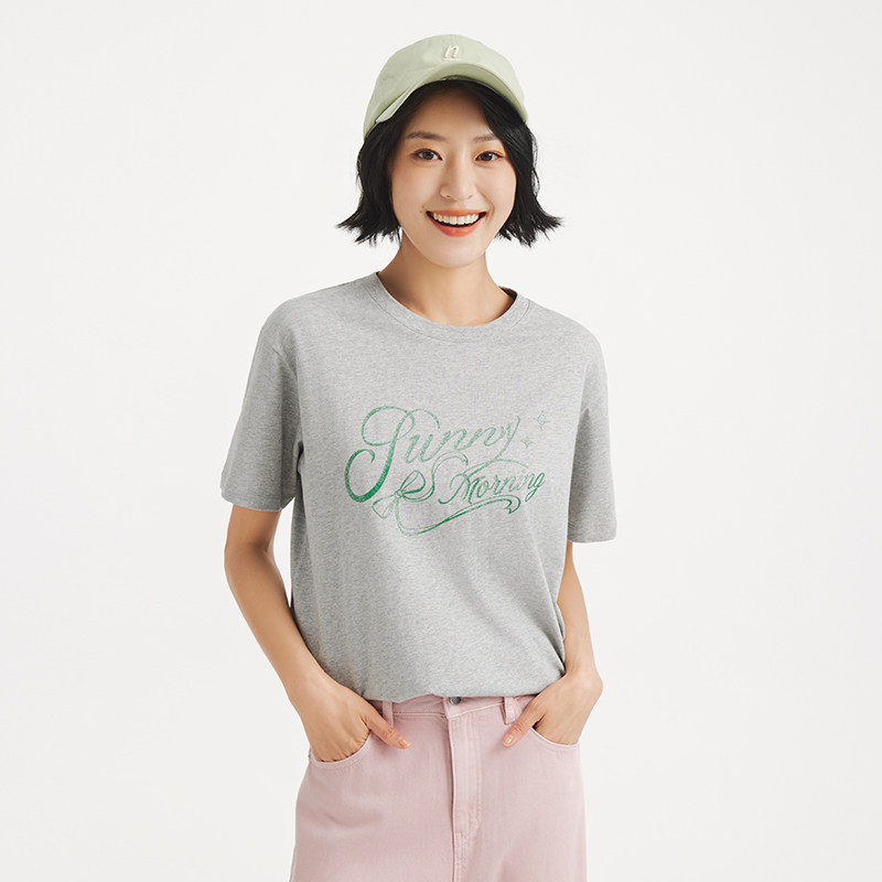 热风女士短袖T恤上衣2025年秋季新款字母印花短袖T恤上衣打底衫