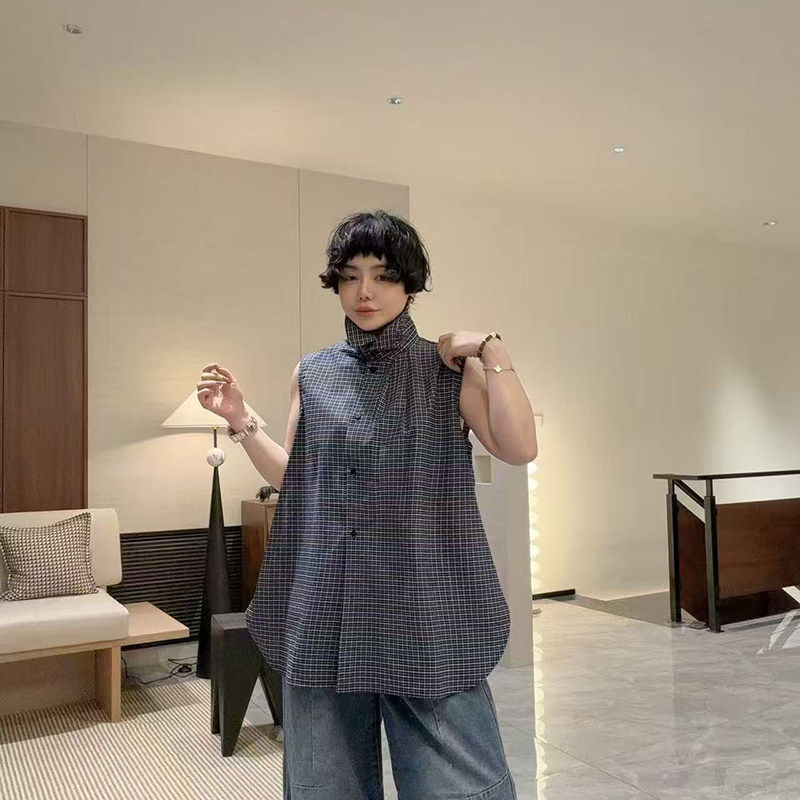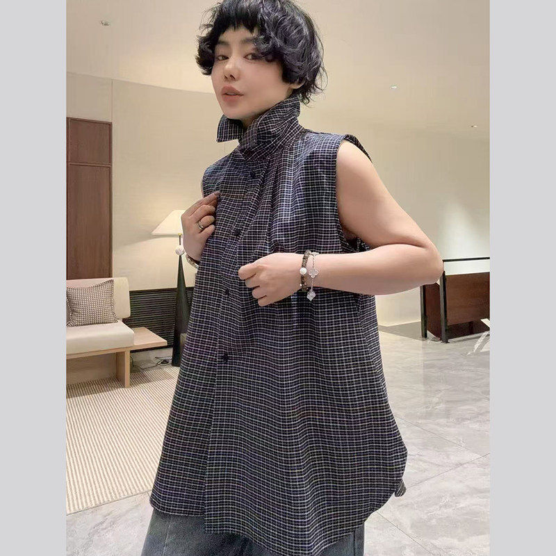 小辫子2662休闲风格子无袖衬衫女2026春季宽松百搭马甲上衣潮2026