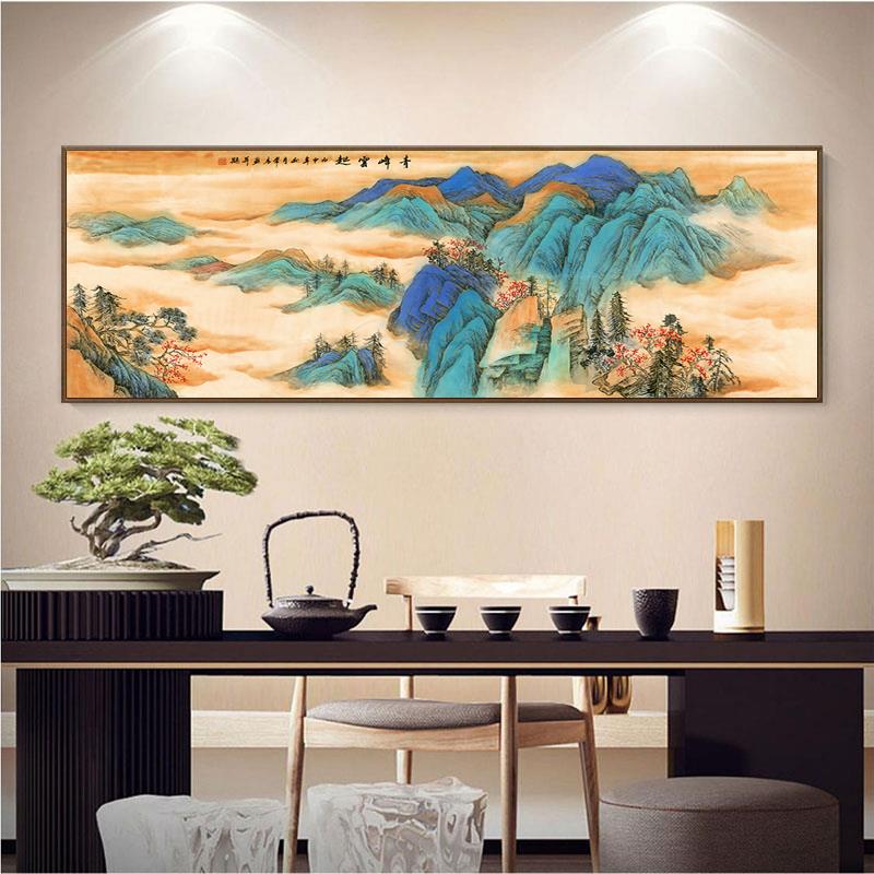 新中式沙发背景墙装饰画客厅风水靠山国画山水水墨挂画大尺寸壁画
