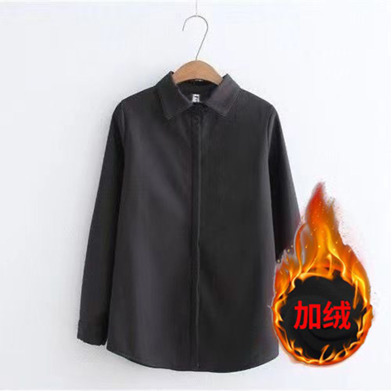 宽松韩版单排多扣长袖衬衫加绒