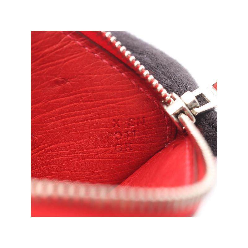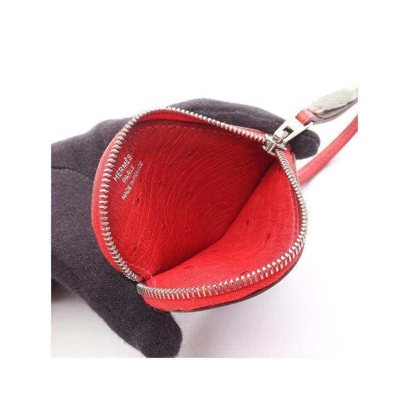 中古Hermes爱马仕女A级95新coin purse零钱包牛皮零钱包红色