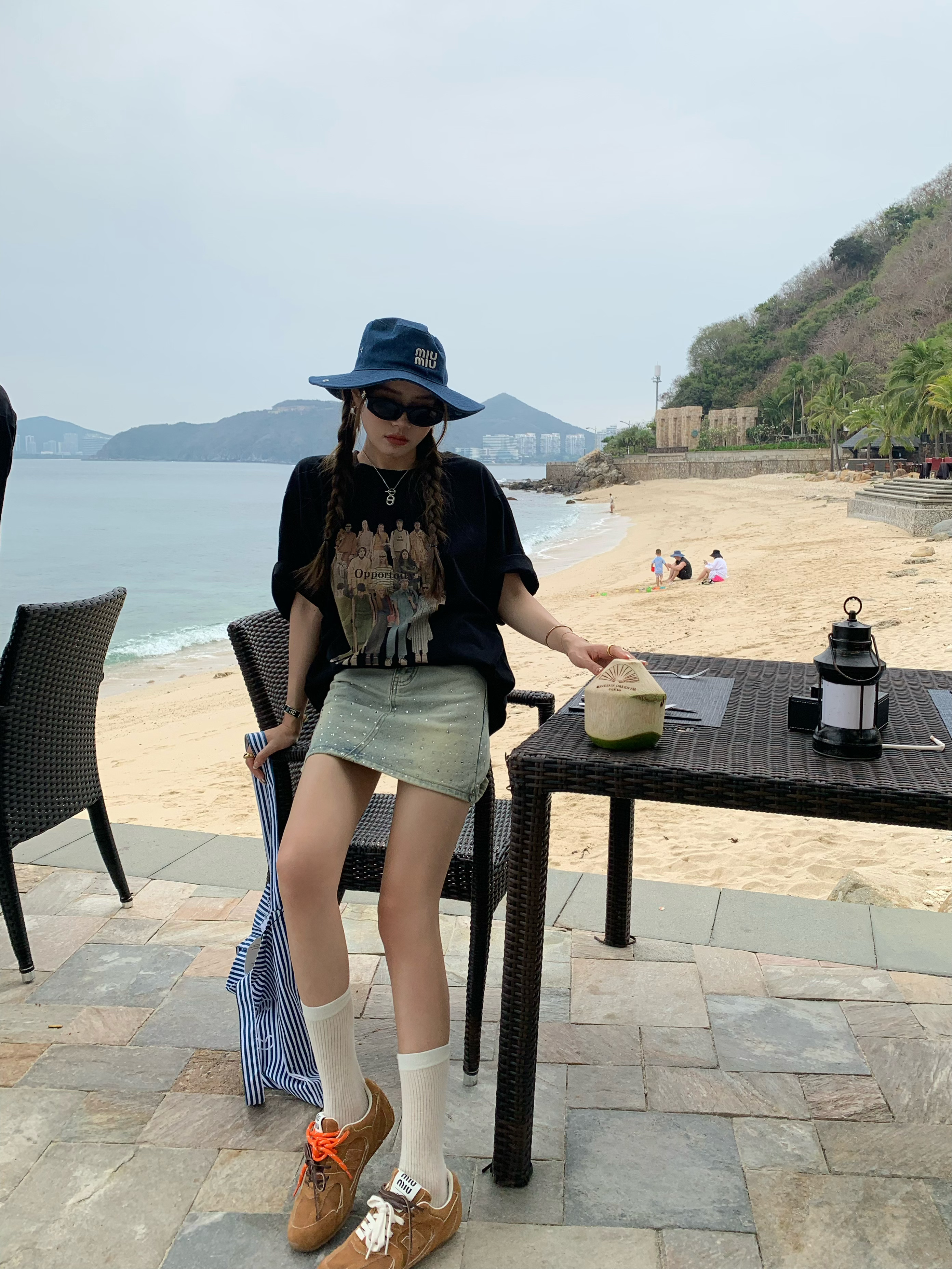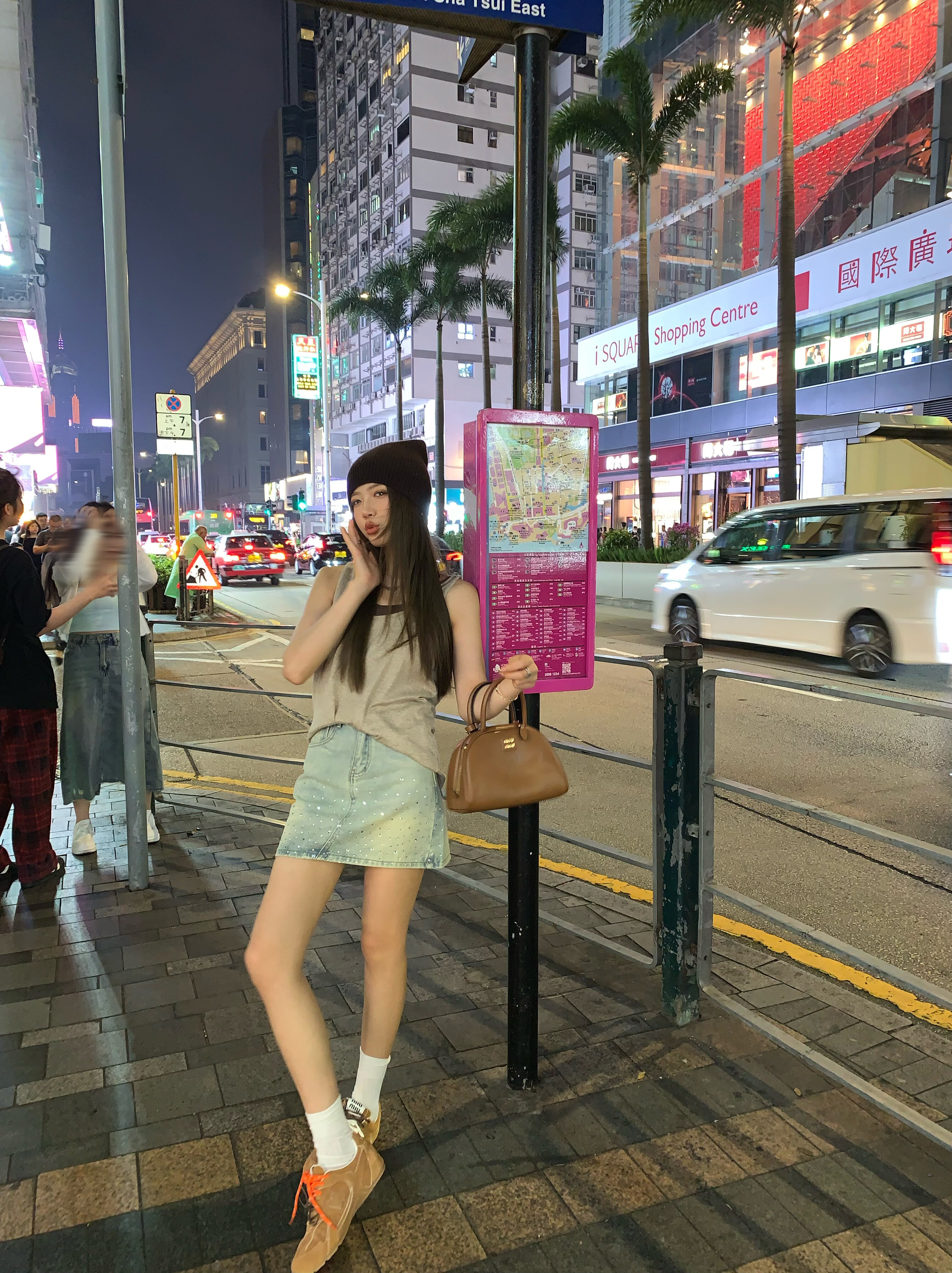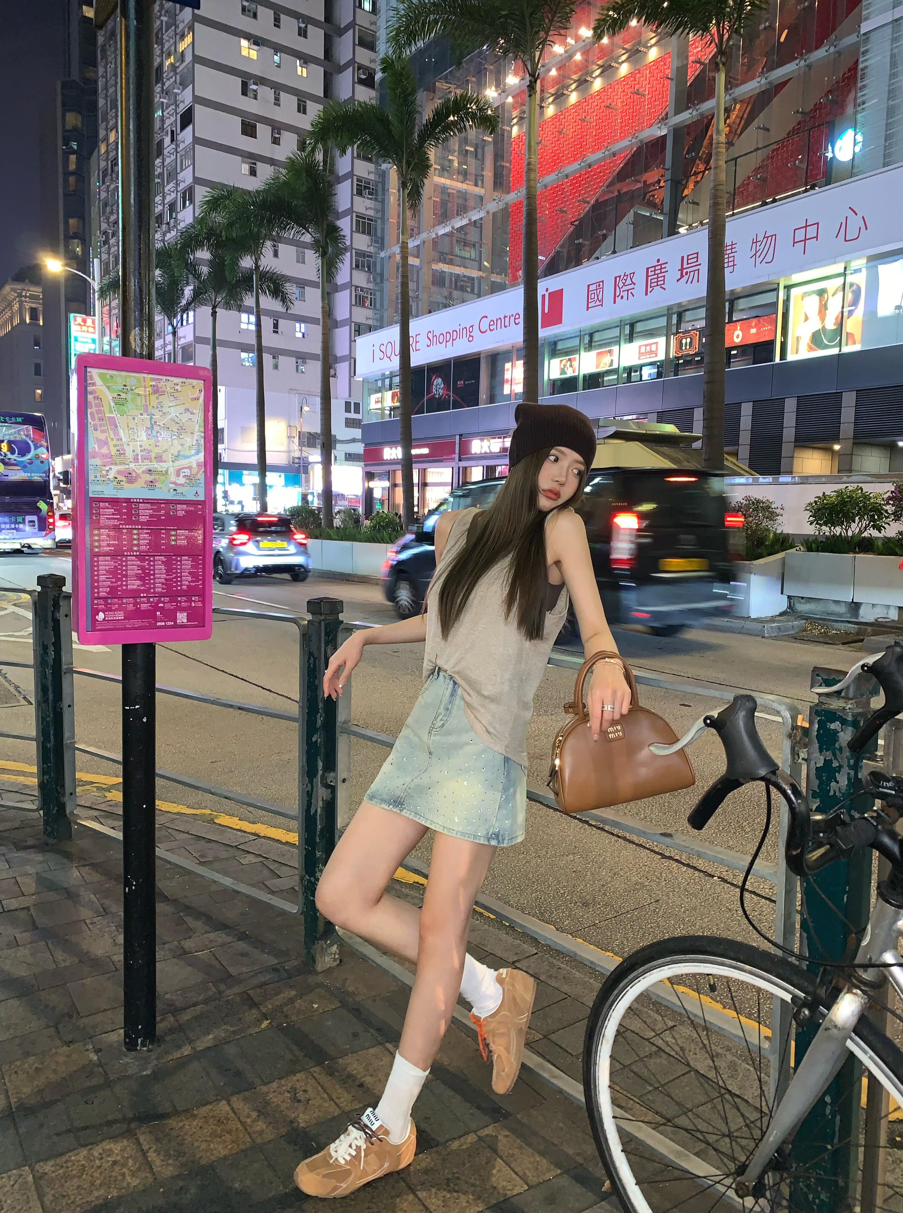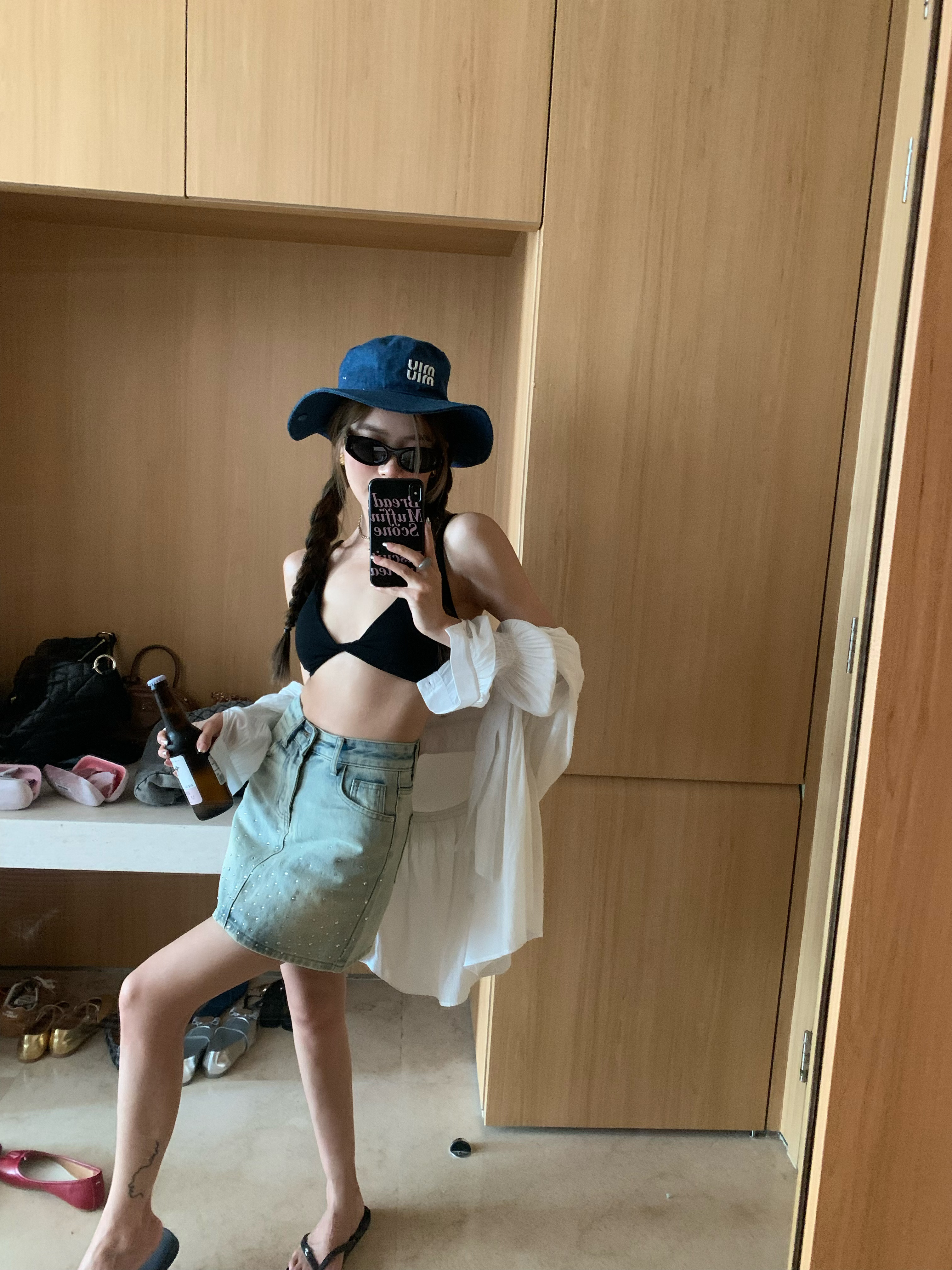 HEBEN MODE 海雾碎钻 复古重工烫钻牛仔半身裙女夏季显瘦A字短裙